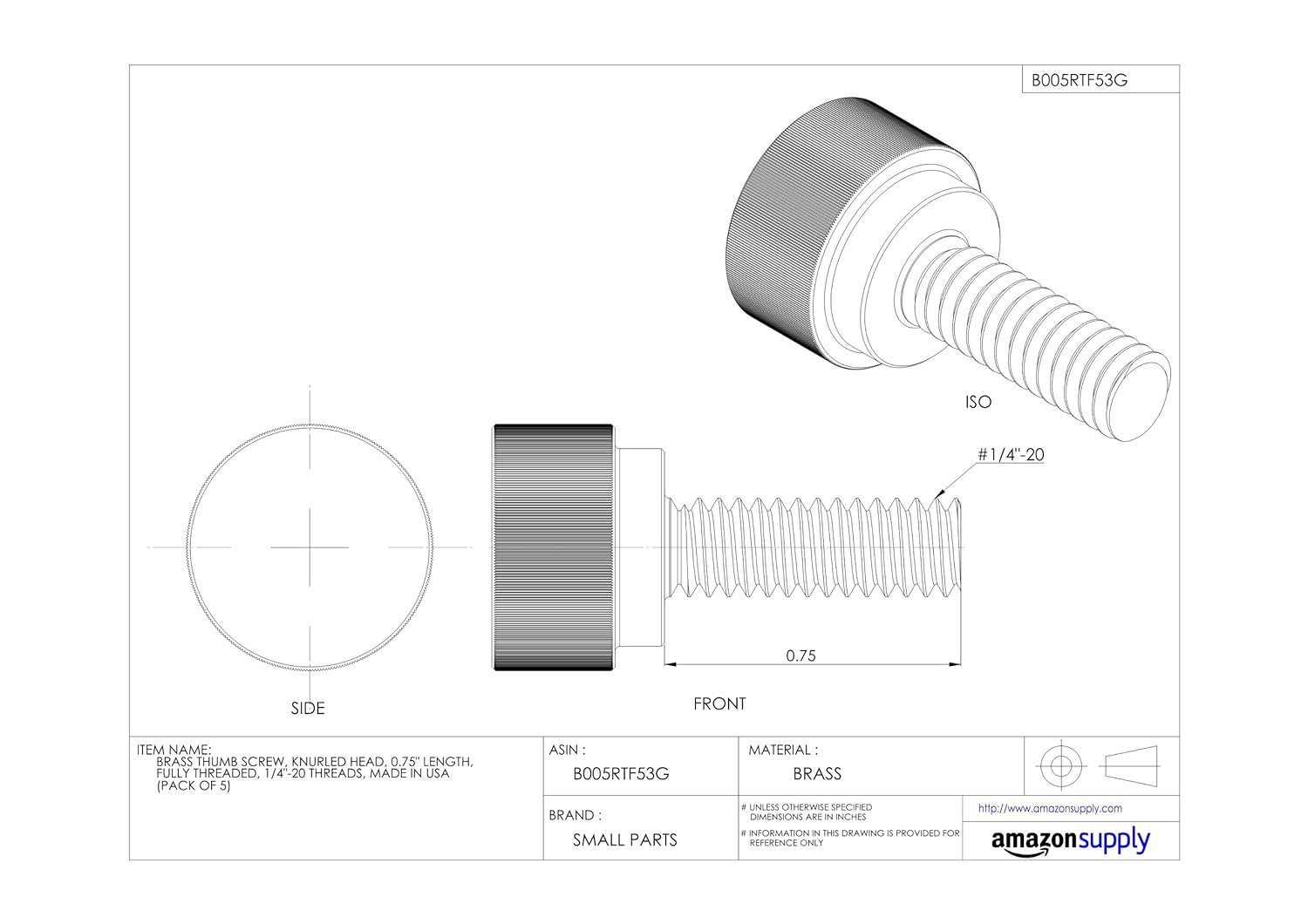 Brass Thumb Screw, Knurled Head, 0.5″ Length, Fully Threaded, 10-24 UNC Threads, Made in US (Pack of 5)