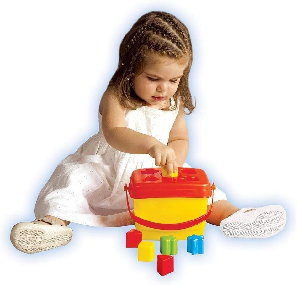 Brightly Coloured Shape Block Sorter Bucket for Toddler & Kids by Dolu