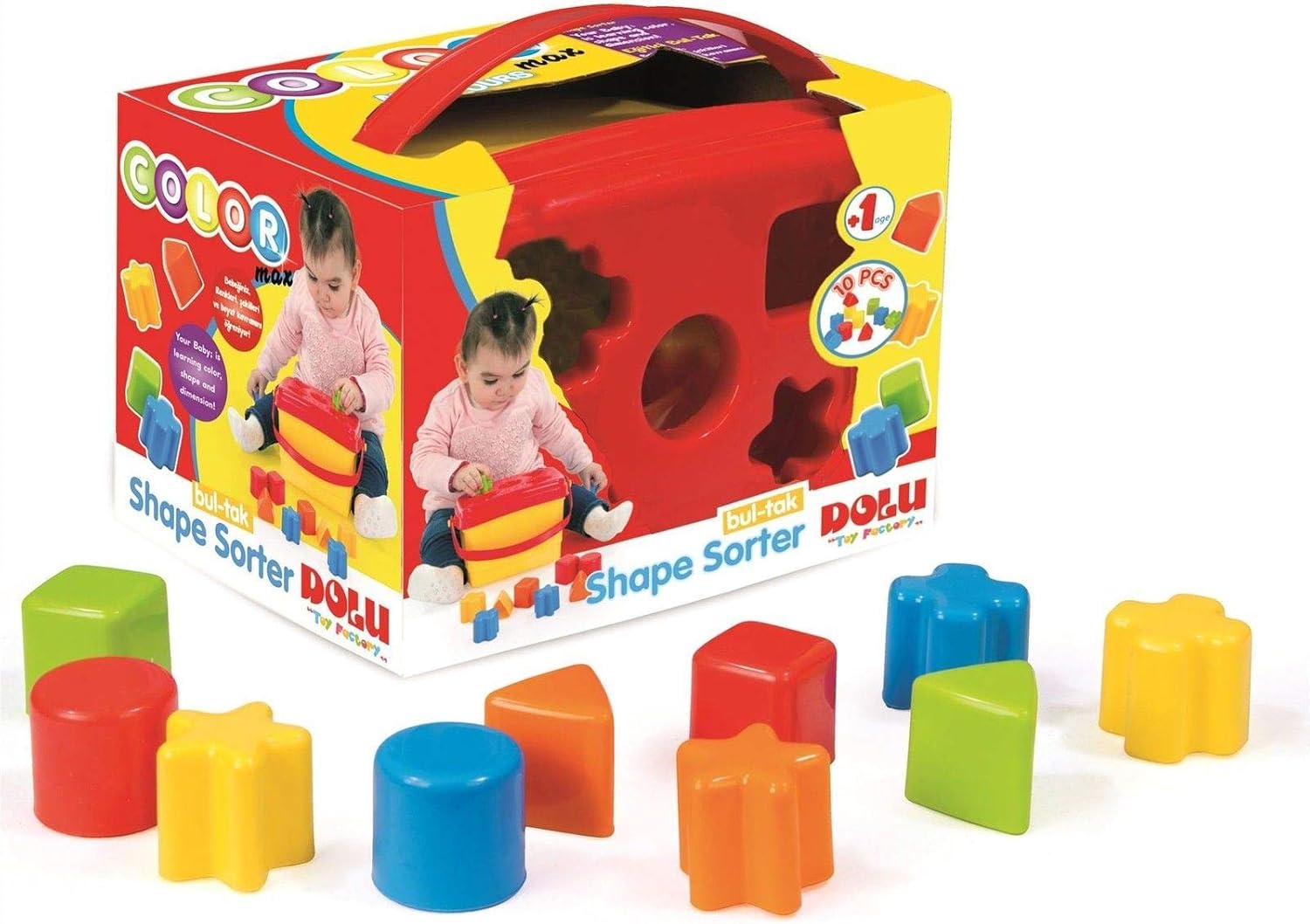 Brightly Coloured Shape Block Sorter Bucket for Toddler & Kids by Dolu