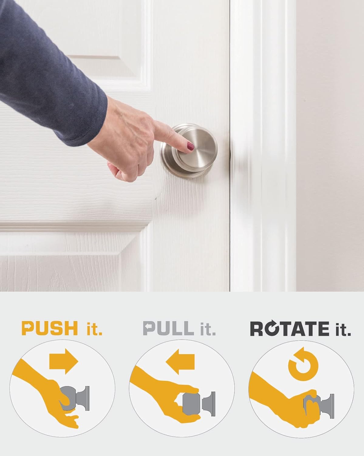 BRINKS – Ganyon Push Pull Rotate Hall and Closet Door Knob, Satin Nickel – Door Lock That Opens Hands-Free with a Push, a Pull or by Rotating