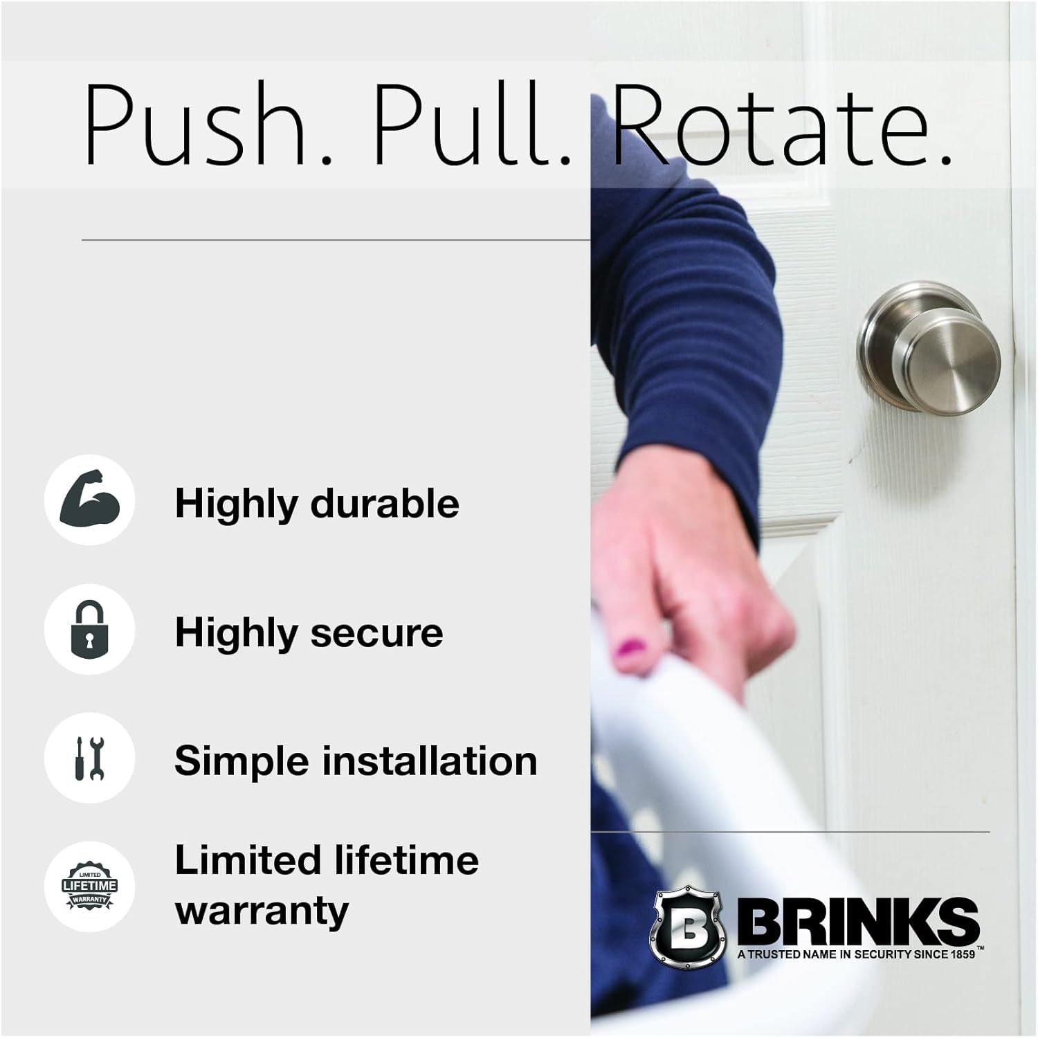 - SECURITY: Push Pull Rotate locks are built with the most rigorous residential security standards you would expect from Brink’s. Commercial grade chassis withstands repeated use, making them ideal for front & back doors as well as interior rooms