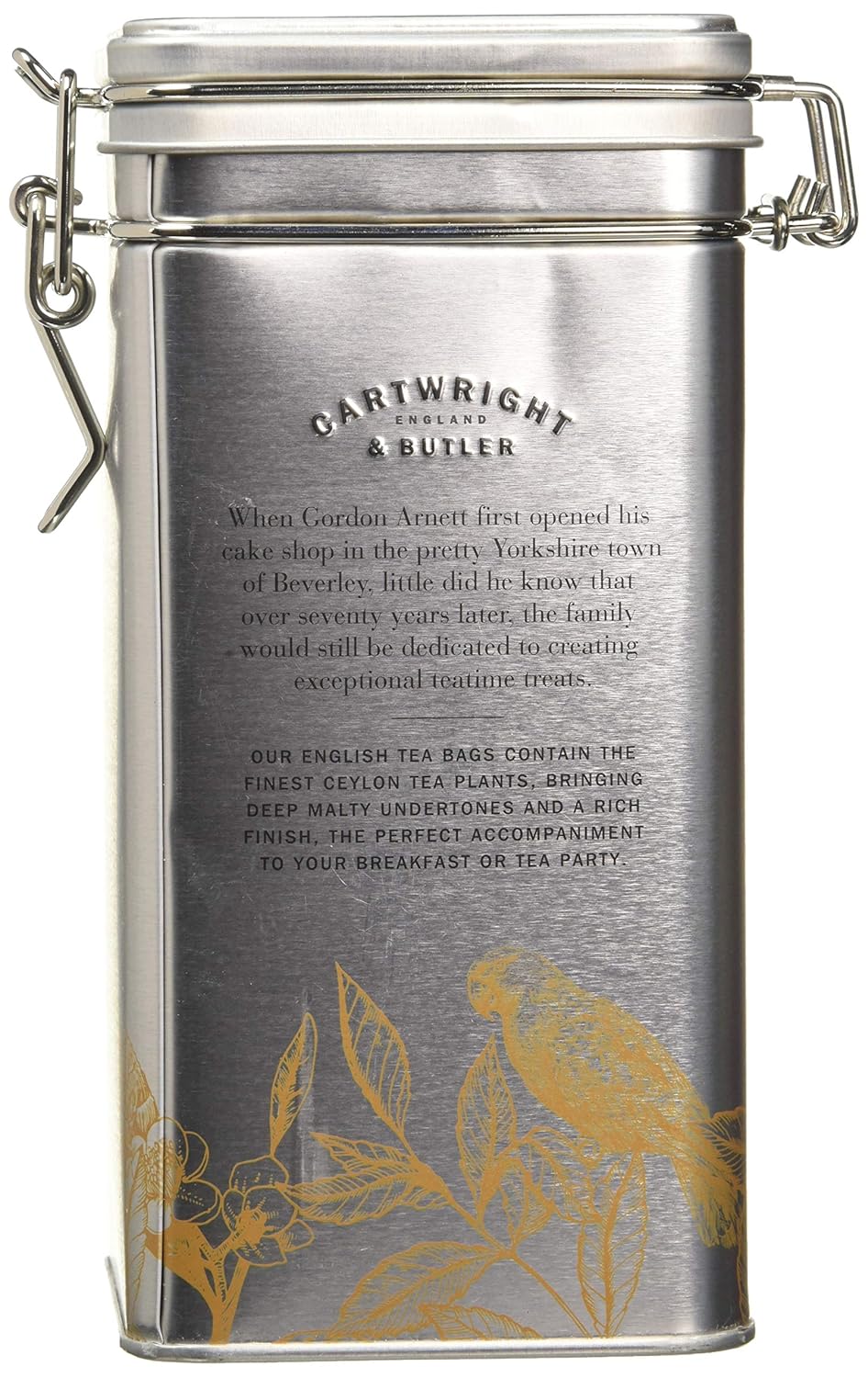 Relax with a traditionally British brew courtesy of Yorkshire suppliers, Cartwright & Butler. Conveniently packaged into teabags so you can enjoy a cup of tea at any time of day, the charming tin contains 75g of the finest Sri Lankan Ceylon black tea; perfect for mornings with a dash of milk. Net weight: 75g Ceylon black tea bags Presented in a tin Product of Sri Lanka