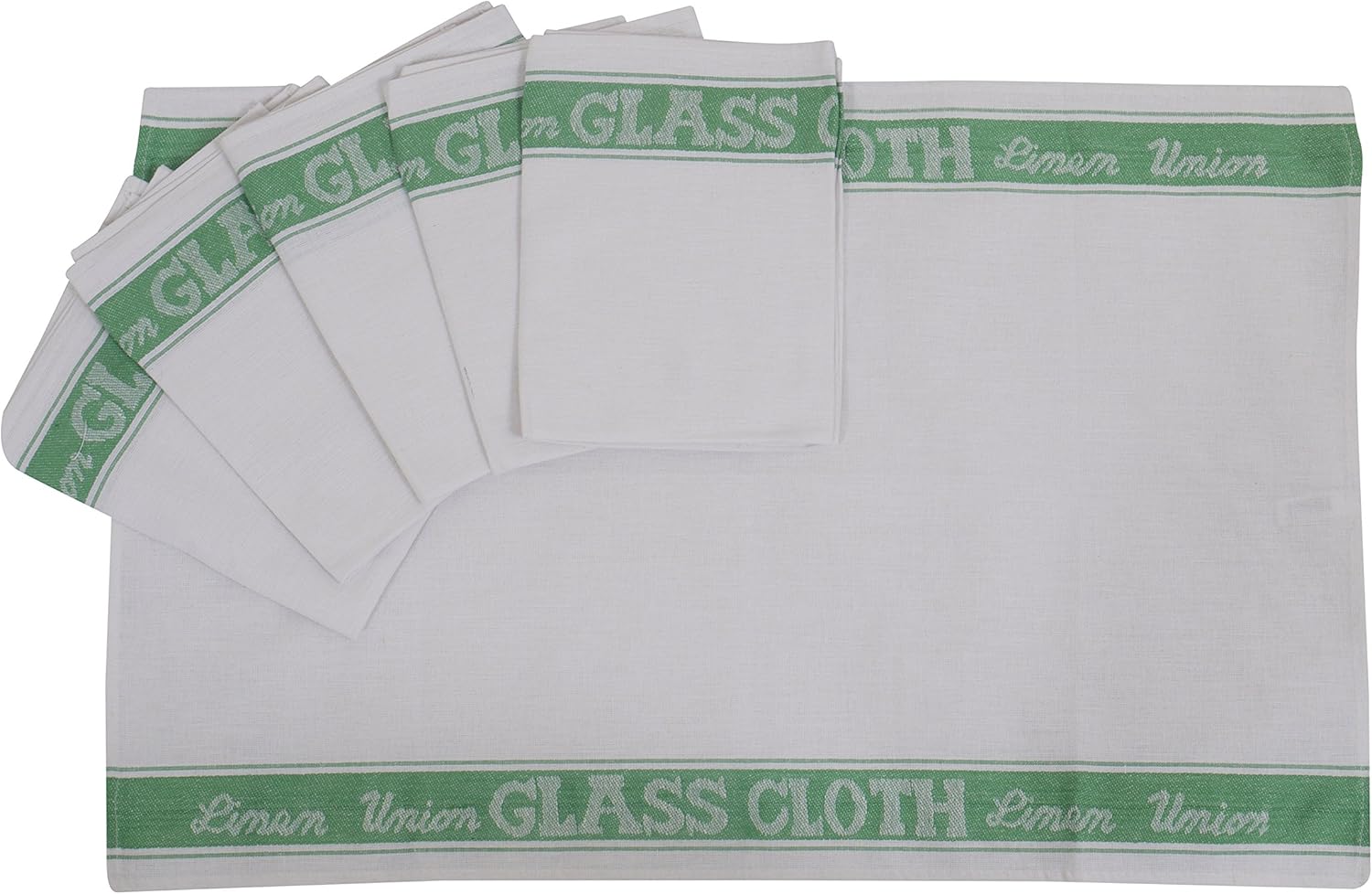 CB Home A Pack Of Six Linen Union Glass Cloths (Tea Towels) Green