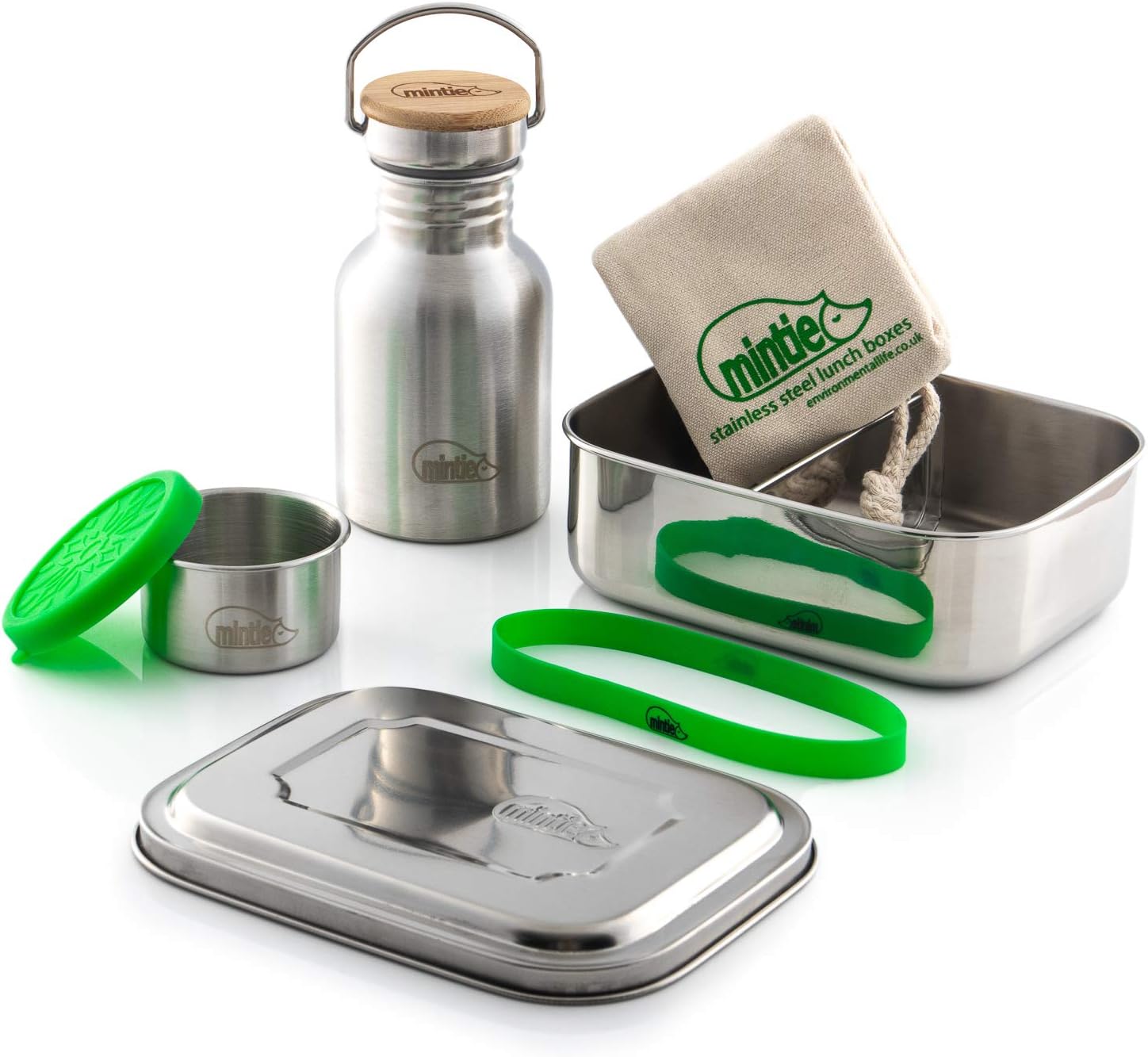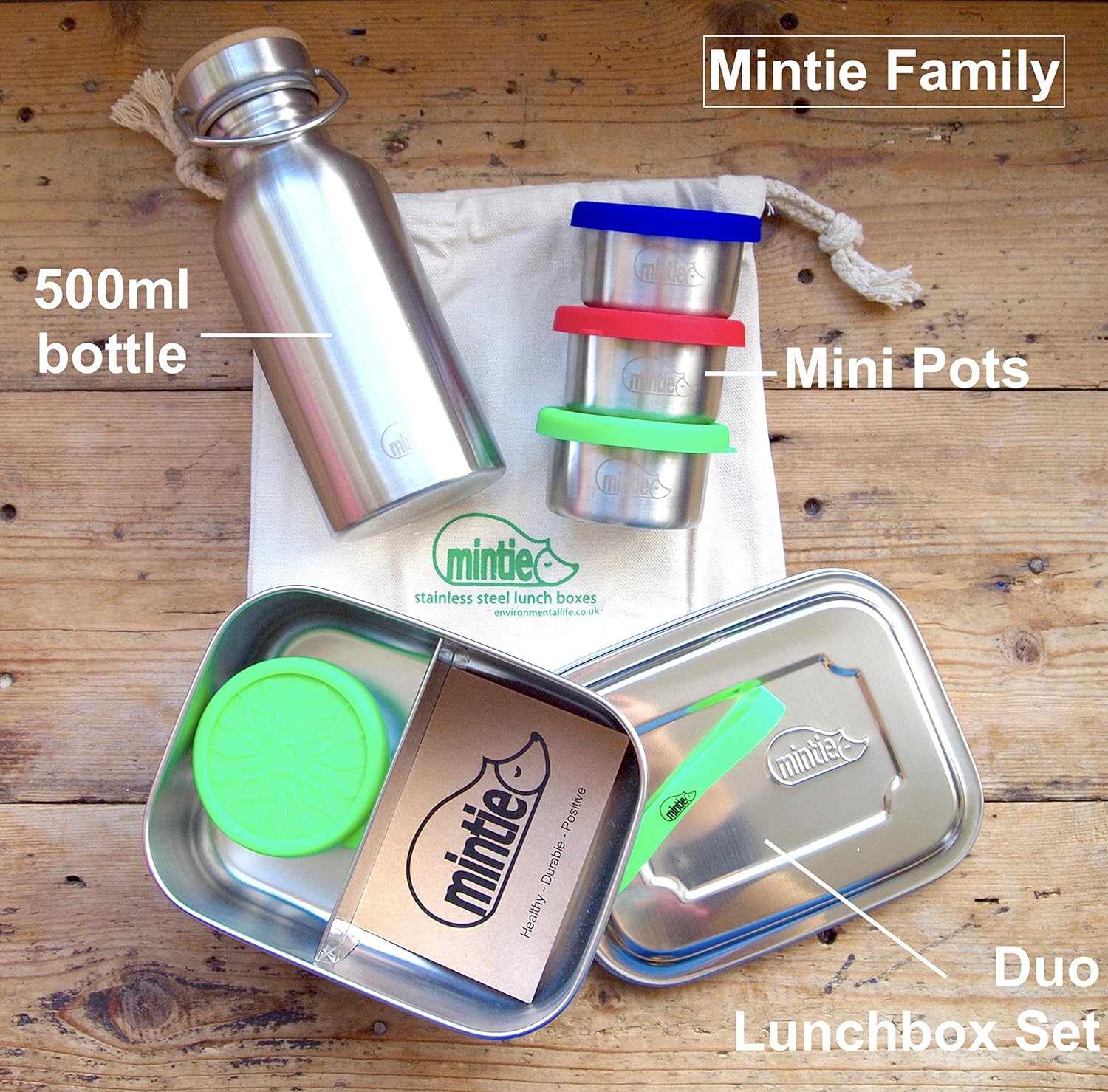 Cinnic Duo – Set di portapranzo in Acciaio INOX, Senza BPA, in Metallo ecologico, con scomparti per Snack e Snack e borsoni in Silicone, in Cotone t