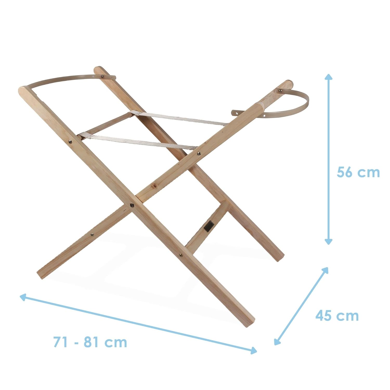 Your baby will stay comfortable and feel safe in their Moses basket with our natural folding stand, which keeps your baby at eye-level while you are in bed, and makes it easier to watch over them. Made from natural wood, which looks great in any nursery. Wooden retaining bars keeps the Moses basket safe and secure, and the stand folds for easy storage/transport when not in use. Suitable for all Clair de Lune Moses baskets or other brands measuring: