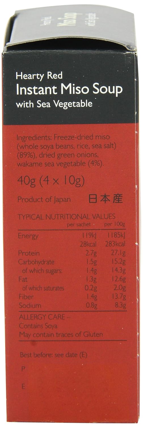 Clearspring Hearty Red Miso Instant Soup with Sea Vegetable 4 x 10g (Pack of 4, total of 16 sachets)