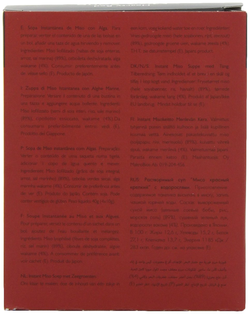 Clearspring Hearty Red Miso Instant Soup with Sea Vegetable 4 x 10g (Pack of 4, total of 16 sachets)