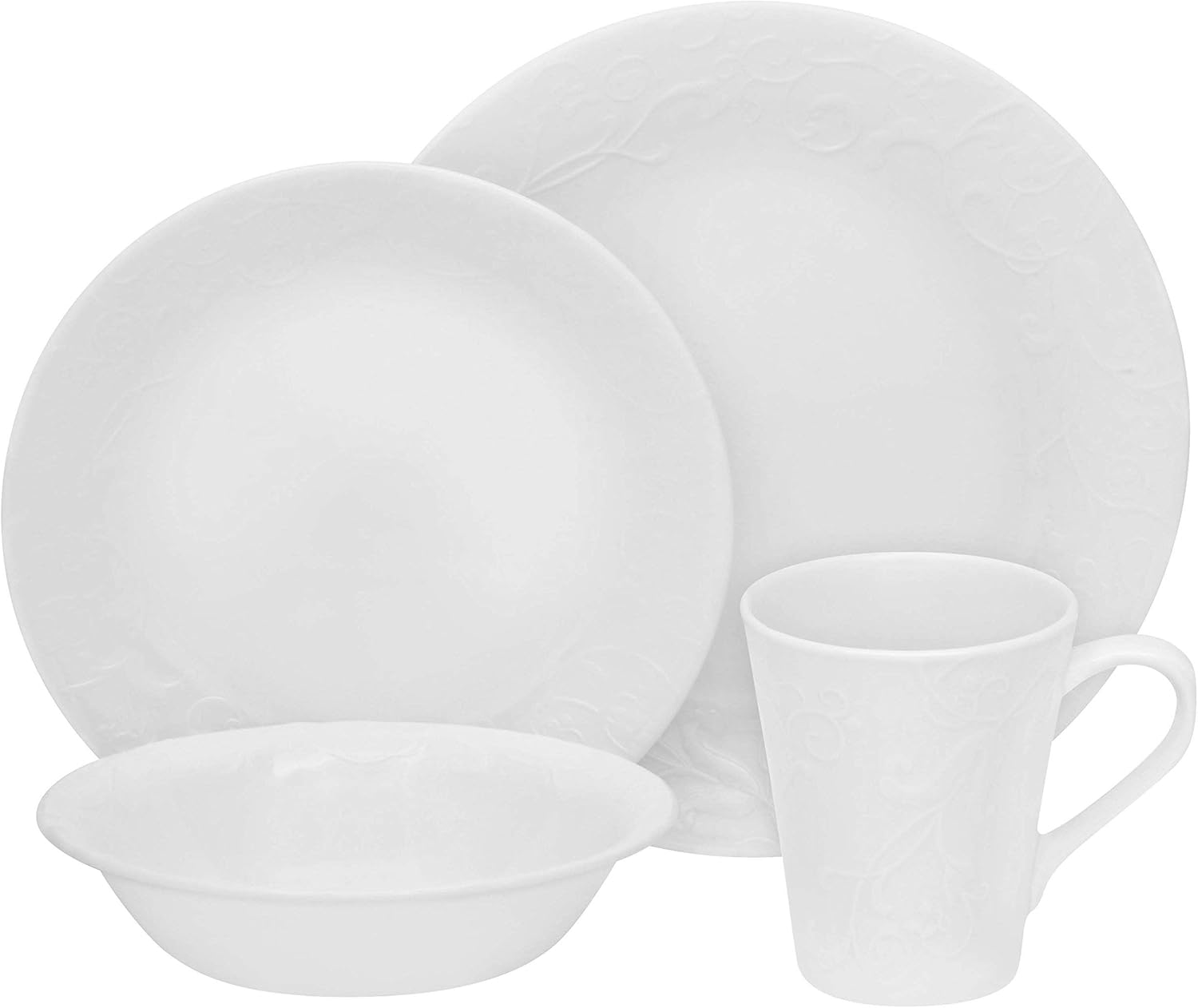 Made in the USA from a unique glass material called Vitrelle, Corelle dinnerware is renowned for being thin and lightweight, yet amazingly strong and durable. The unique 3 layered Vitrelle glass makes Corelle dinnerware as thin and translucent as fine china, yet dramatically stronger. Every piece of Corelle dinnerware is chip & break resistant, making it perfect for outdoor and indoor dining, proving beauty can be tough.