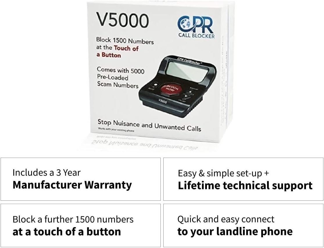 CPR V5000 Call Blocker for Landline Phones – Stop All Unwanted Calls at a Touch of a Button – Join Over 1 Million Satisfied Customers