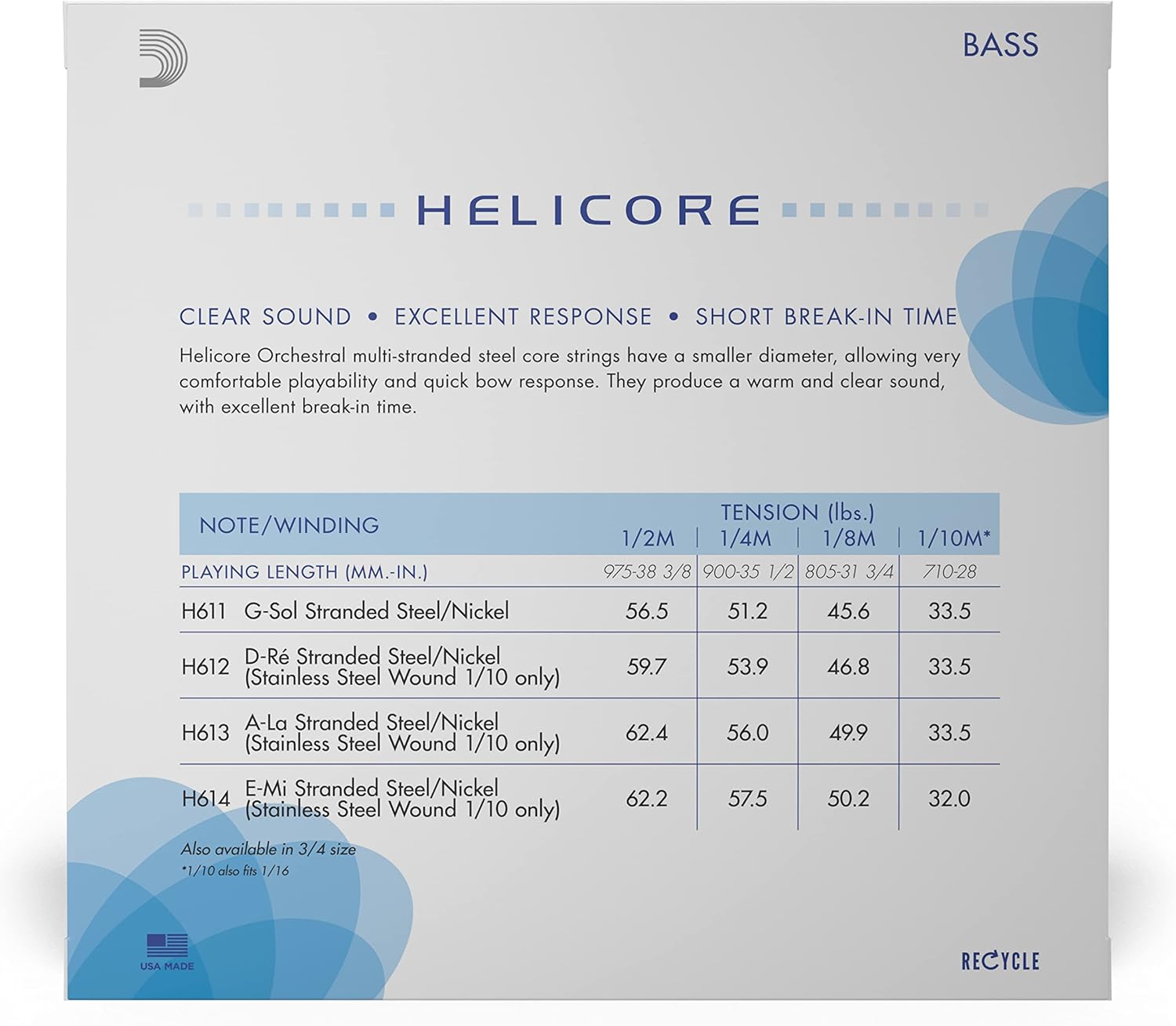 Helicore are crafted with a multi-stranded steel core for easy playability and warm tone. Incredibly flexible with a fast bow response, they’re optimized for many genres and styles. With their quick settling time, Helicore strings work well for both professional performances and classrooms.