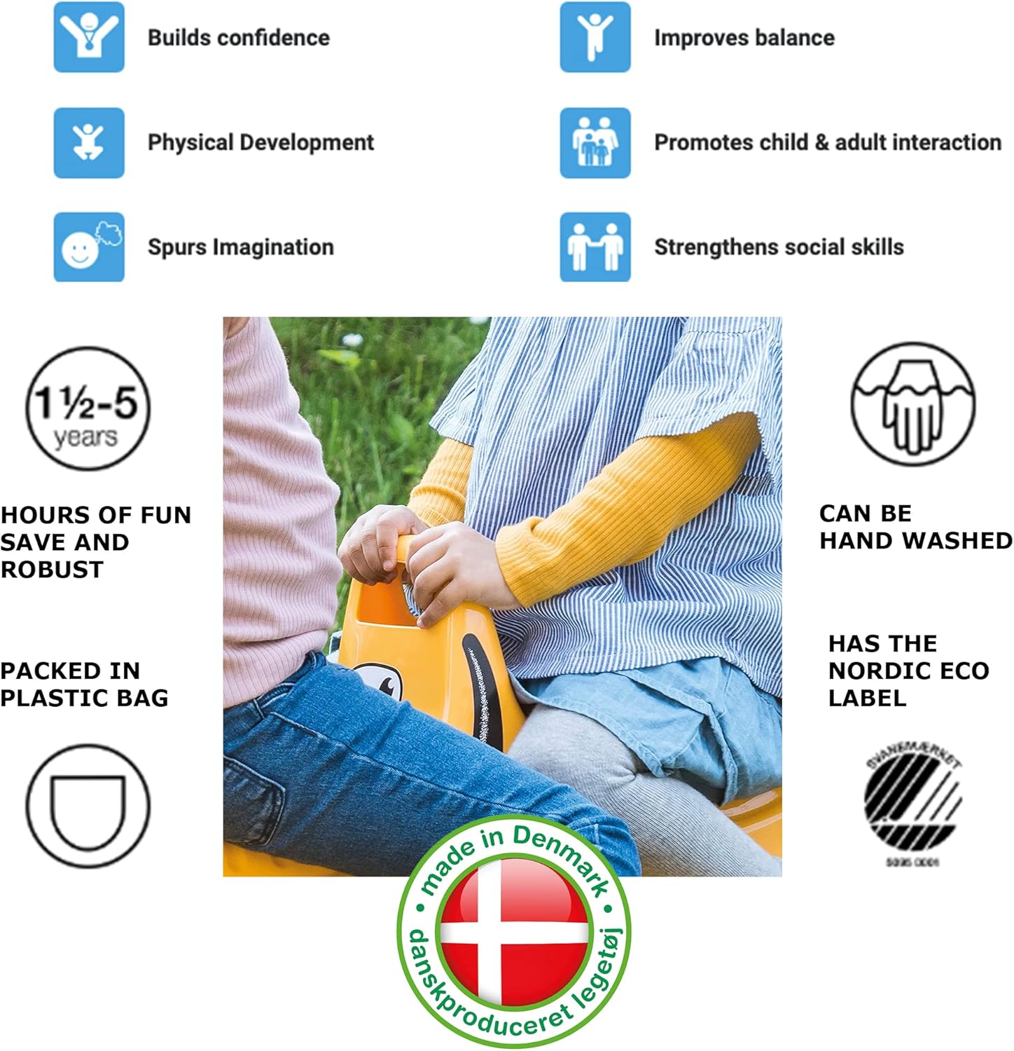 This rocking Rufus will provide hours of play an even accommodate. No assembly required, can be used indoors or outside. The rocker is designed for safety and stability. This rocker is very durable and has outstanding play value, that will provide years of continued rocking, made from top grade raw materials, they ensure a consistency of quality as well as color. Dantoy has been producing quality products in Denmark for over 50 years. The company uses the finest materials and best practices to protect customers, employees and the environment. Dantoy is the only toy manufacture in Europe to receive the Nordic Green Swan Ecolabel.
