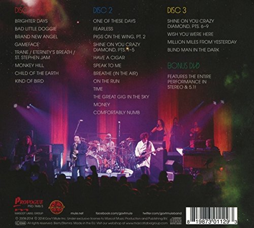 DELUXE EDITION : 3CD + DVD set. Epic 24-track live performance from the Orpheum Theatre in Boston in October 2008, made up entirely of Pink Floyd covers! Comes with a BONUS DVD of the show in Stereo and 5.1 surround sound. (GOVT MULE)