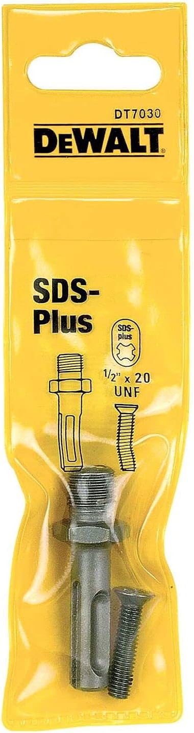 Dewalt SDS-Plus 1/2in x 20 UNF chuck adaptor. Dewalt has earned a reputation for designing, engineering and building tough industrial machinery. In 1923 Raymond Dewalt invented the radial arm saw that for decades continued to set the standard for quality and durability. It was the start of our long lasting reputation among professional craftsmen: tough, powerful, precise, rugged and reliable. These became the trademarks of the Dewalt name. Today these characteristics are incorporated through long experience and state-of-the-art engineering into every product of Dewalt’s broad range of high performance, portable, electric power tools and accessories. Dewalt’s broad range of high performance, portable, electric power tools and accessories. The acceptance of these Dewalt products by professional tradesmen around the world has made Dewalt the number one selling brand of professional power tools.