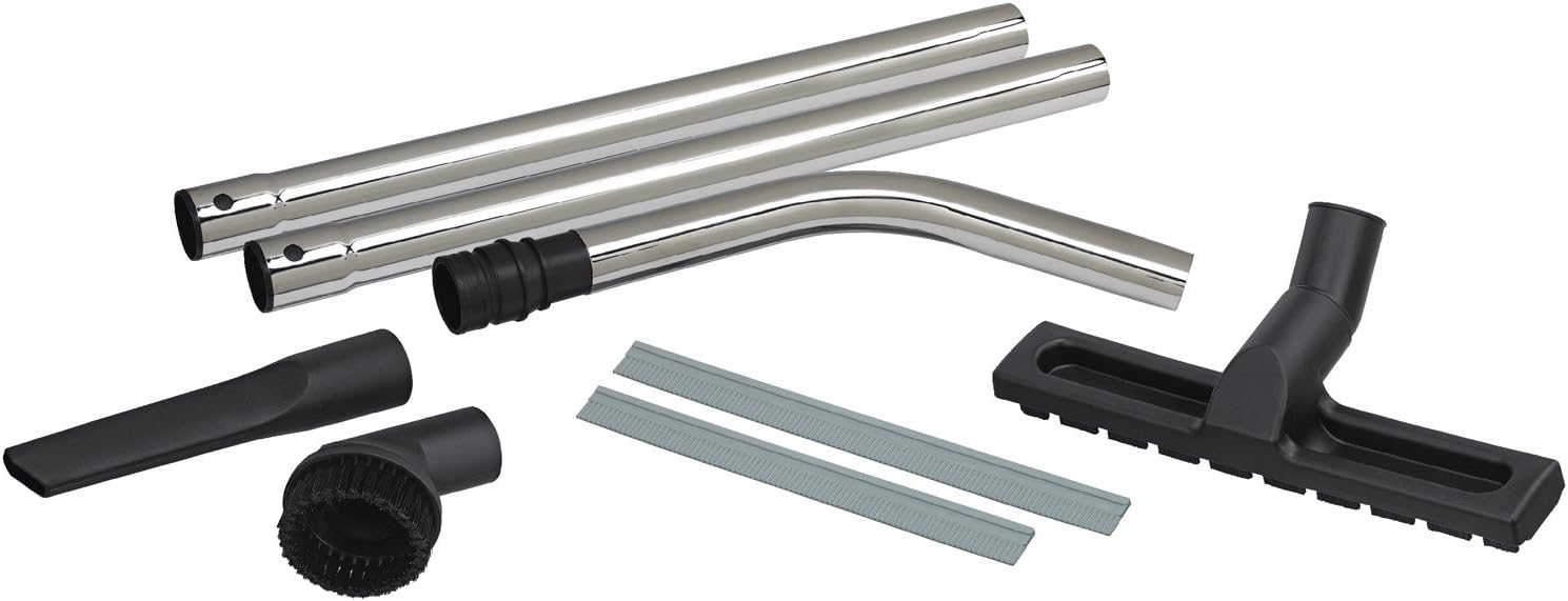 - Includes a Floor Sweeper, Rubber Squeegees for Floor Sweeper, Steel Extension Wands, Crevice Tool, Brush Tool, AirLock Adaptor