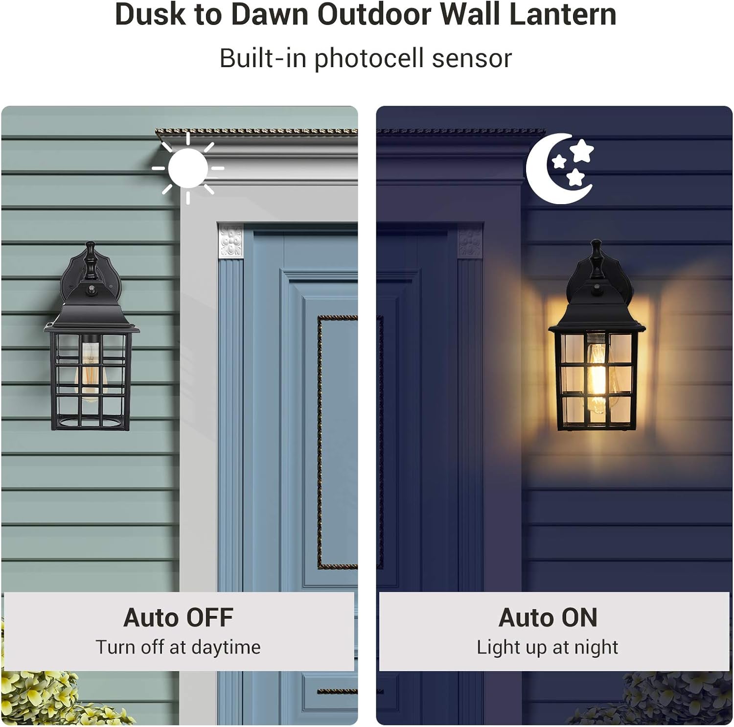 • 【Built-in Photocell Sensor】With built-in dusk to dawn sensor, the wall light will automatically turn on at night and turn off when daytime (You need install your bulb before that). No more forgetting to turn the outside lights on or off.