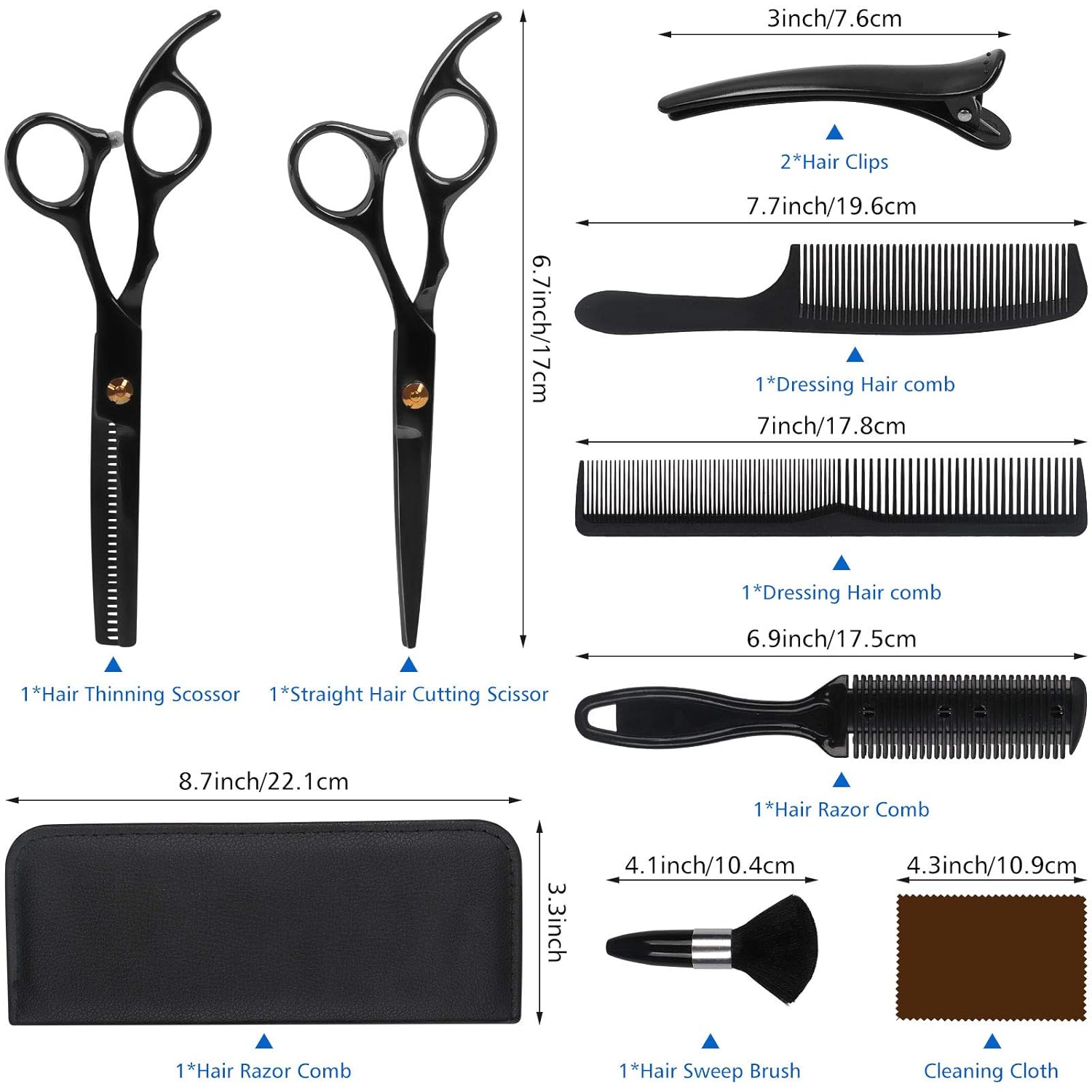DigHealth 12 Pcs Hair Cutting Scissors Kit, Professional Hairdressing Scissors Kit with Stainless Steel Thinning Scissors, Comb, Cape and Clips, Hair Cutting Shears Set for Baber, Salon and Home