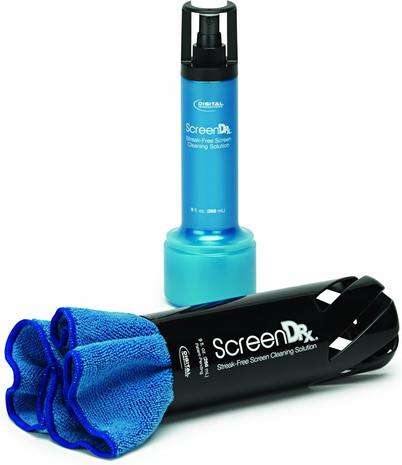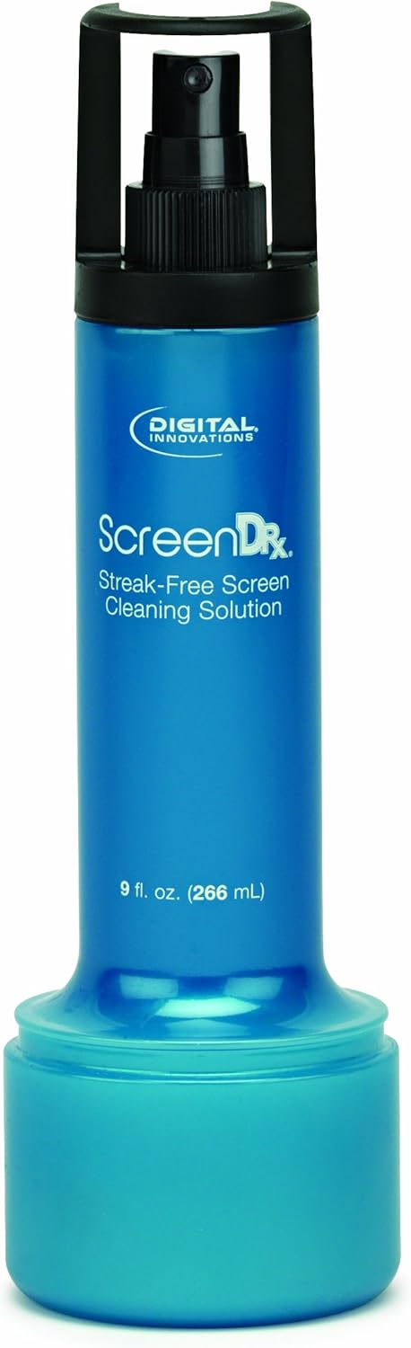 Digital Innovations CleanDr 9oz Screen Cleaning Kit provides safe and quick removal of dust, dirt and oil from plasma, LCD and all other types of screens. The newly engineered, patent-pending bottle design provides built-in cloth storage and drying vents for the ultimate convenience. The non-abrasive, machine washable microfiber cloth and UltraClear II solution are perfect for wet/dry electronics cleaning. Free of ammonia, alcohol or detergents and specially formulated for plasma and LCD screens, UltraClear II Streak-Free Solution delivers a glare-free screen every time. When used as directed, UltraClear II is approved for use on all leading manufacturers’ LCD and plasma screens.