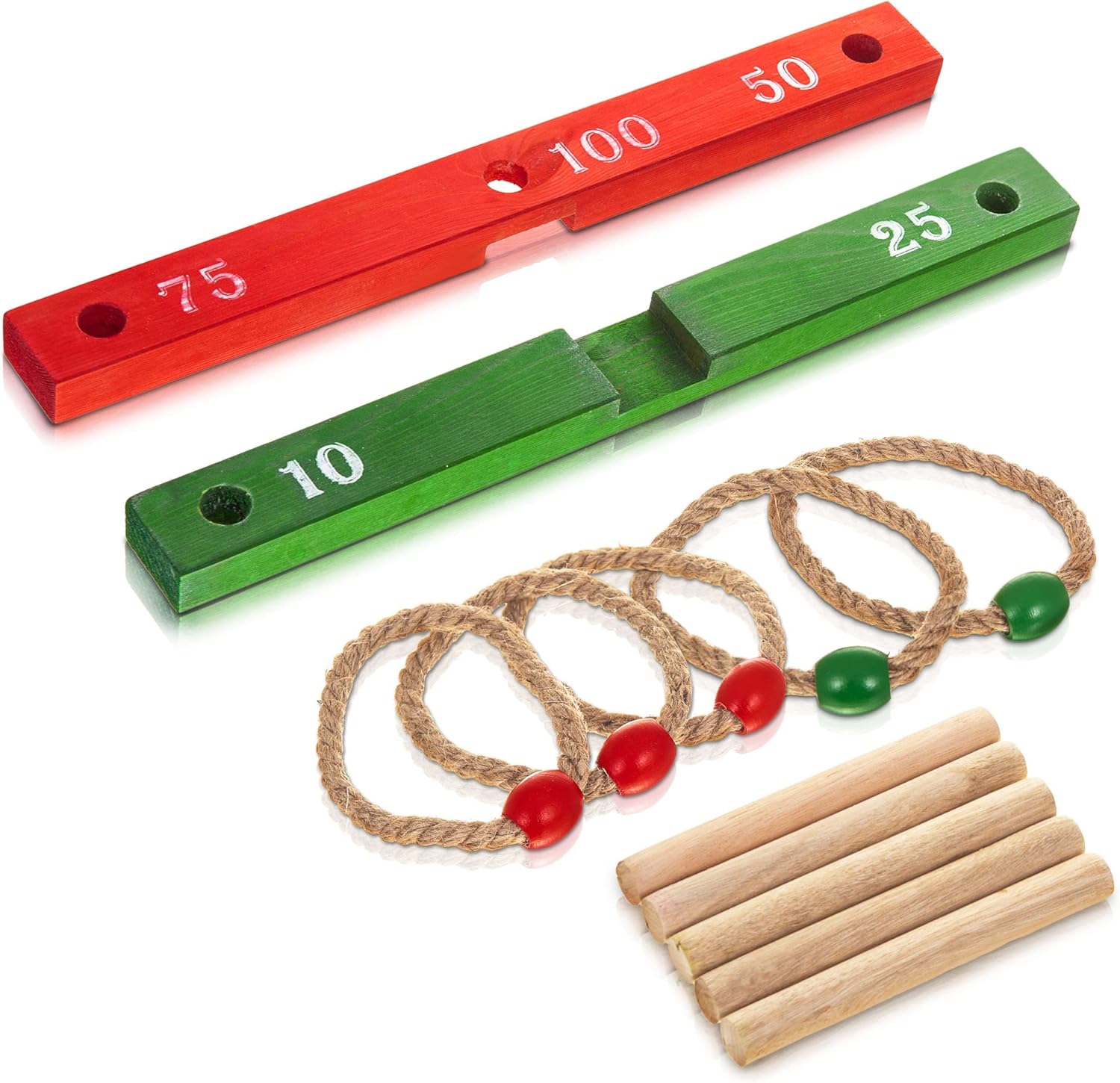E Bargains UK GARDEN/OUTDOOR ROPE QUOITS & WOODEN PEGS THROWING GAME