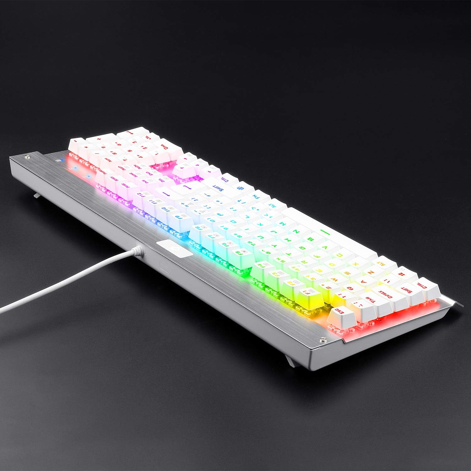 Eagletec KG010 Pro Mechanical Keyboard RGB LED Backlit with Brown Switches Wired 104 Keys for Windows PC Gaming and Office, UK QWERTY (White)