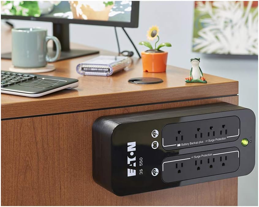 The Eaton 3S provides up to 30 minutes of battery backup and surge protection for your home and office equipment. The sleek design of the 3S fits neatly under the desk, in an entertainment center or on the wall. The plug-and-play functionality of the 3S allows you to start backing up your equipment the moment its taken out of the box.