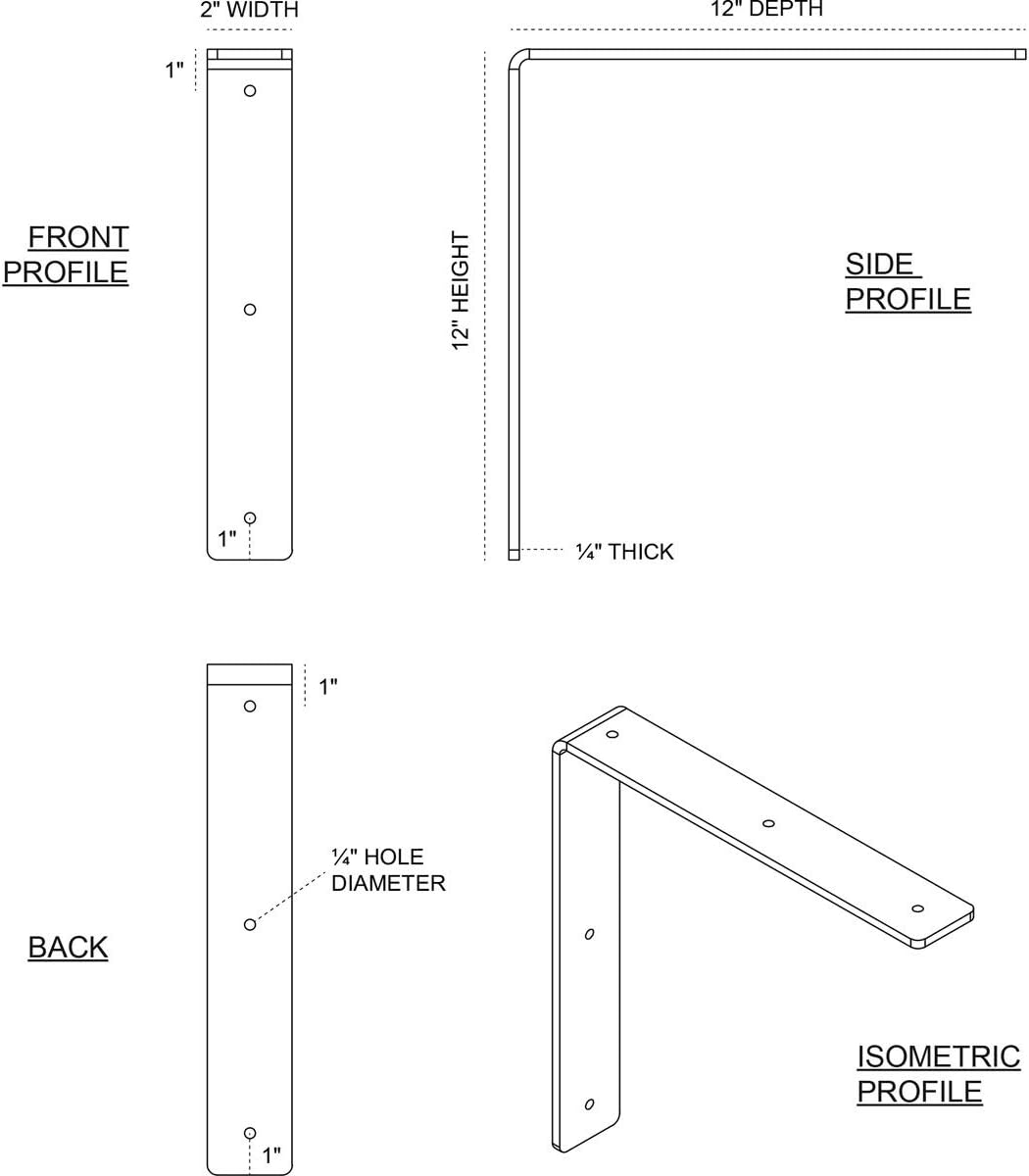 Ekena Millwork BKTM02X12X12HASS 2-Inch W x 12-Inch D x 12-Inch H Hamilton Bracket, Stainless Steel