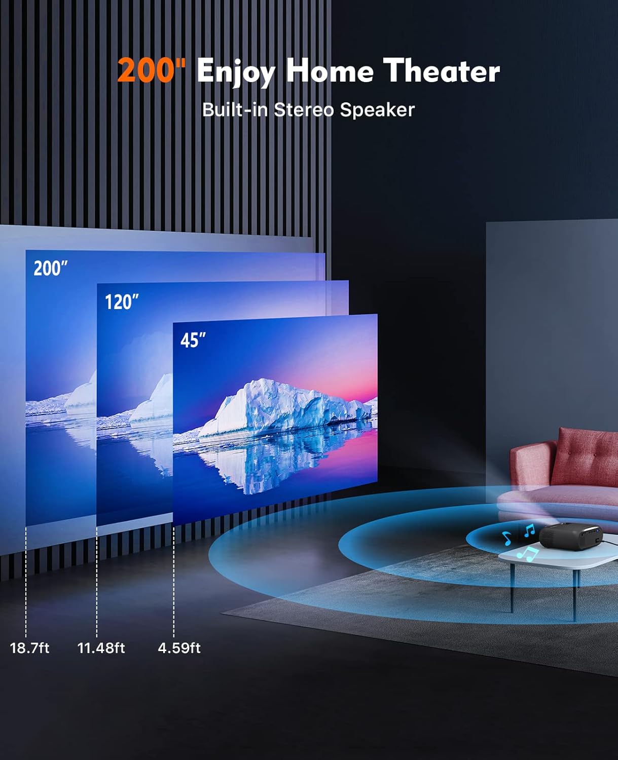 - Projection Size: 32-236 inch (Best in 60”to 120”)