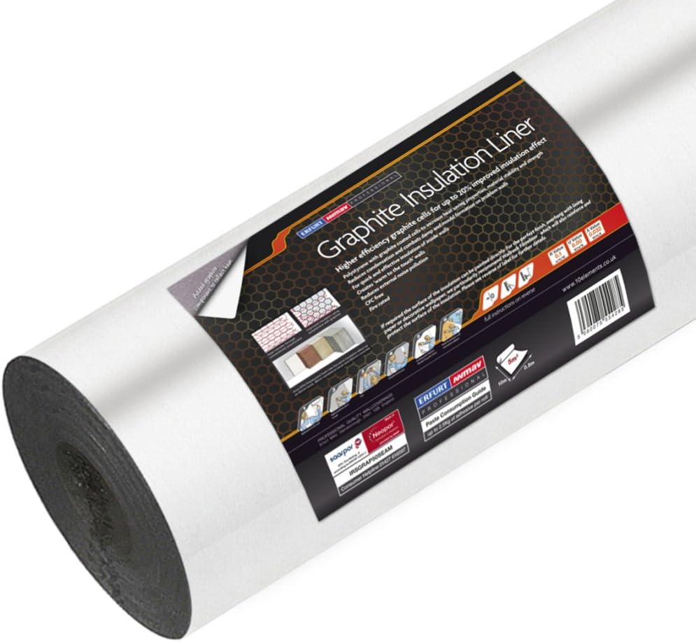 4mm polystyrene with graphite components : laminated to a �ready to go� quality lining : added graphite components increase heat saving properties by up 20% : improved material stability and strength : combats mould and damp formation for a healthier home : twice as thick as regular polystyrene wall veneers : quick and effective insulation of inside walls : reduces external noise pollution : cfc free : fire rated : energy saving trust listed