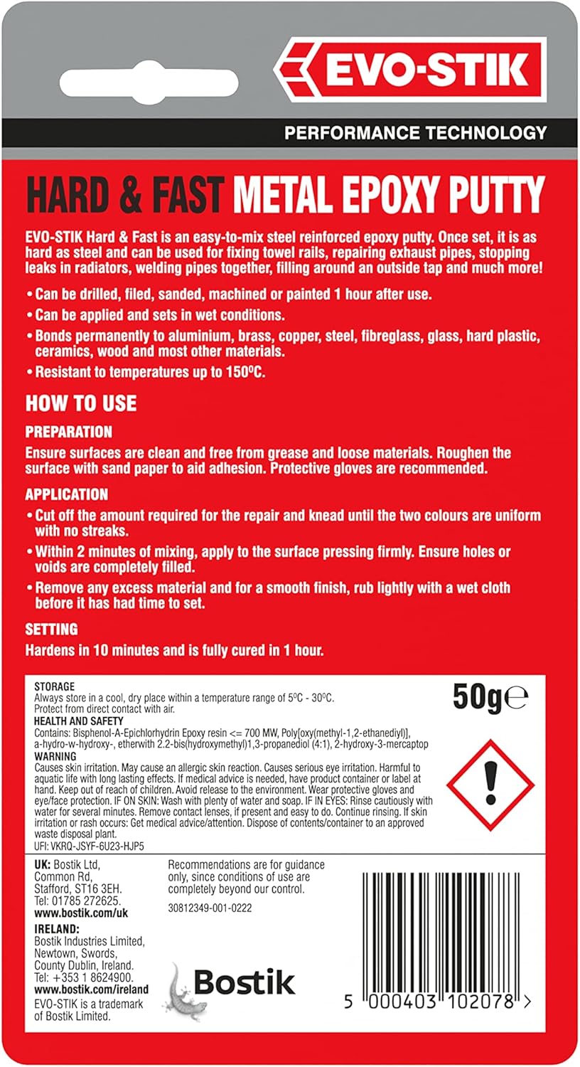 A Steel Reinforced Metal Epoxy Putty, Suitable For Use With Metals And Most Other Types Of Materials. It Sets Hard In 10 Minutes And Can Be Used Under Water. It Can Be Drilled, Tapped, Filed, Machined, Sanded And Painted Once It Is Dry.