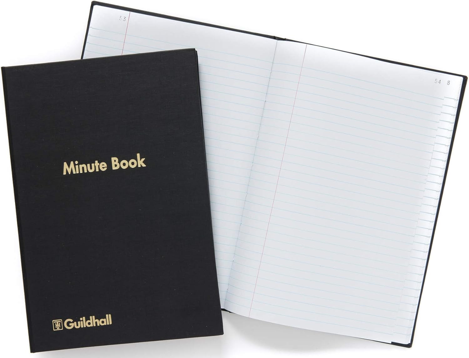 Exacompta Guildhall Minute Book is 298 x 203 mm in size and has a bound black cover. Minute book contains 80 leaves/160 pages and each page is numbered.