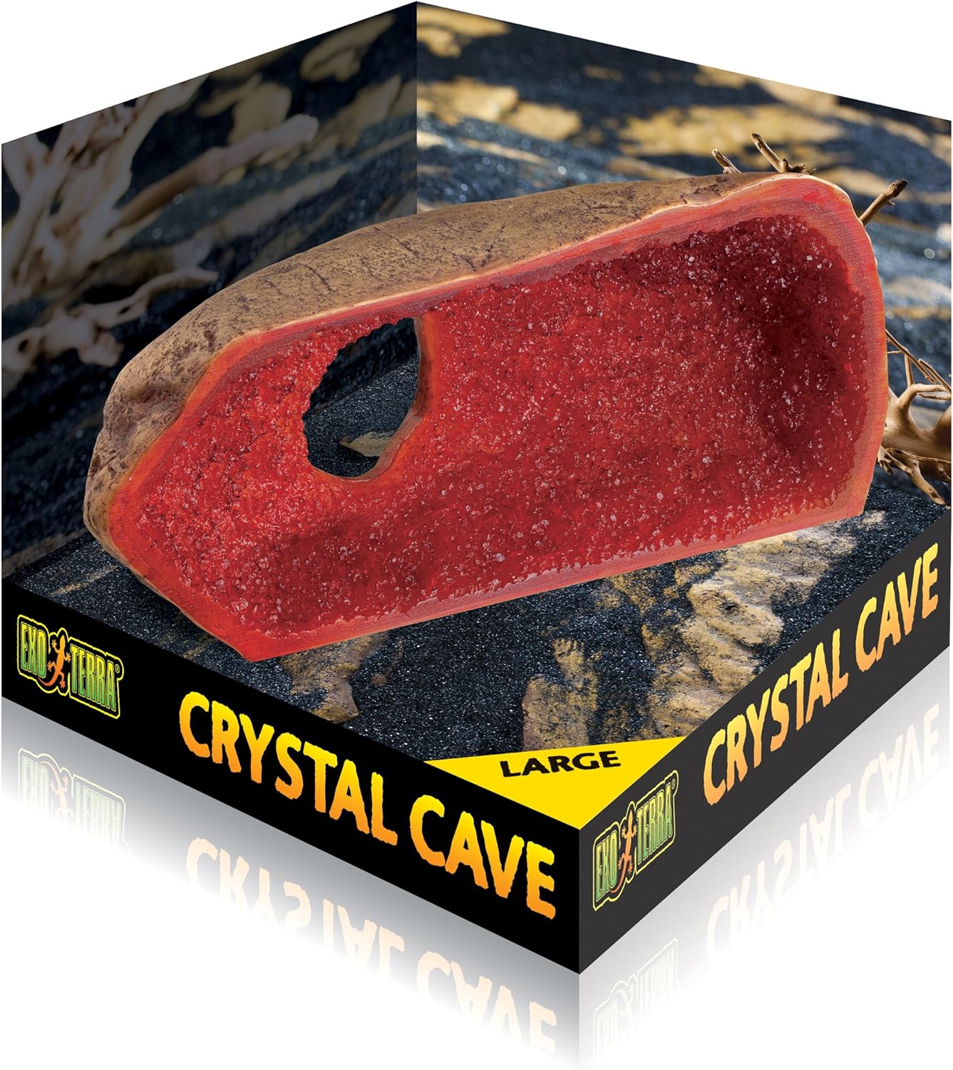 Exo Terra Crystal Caves are extremely realistic and add an exiting accent to any type of terrarium, desert or rainforest. These hides are simply placed against the front or side windows of the terrarium, creating a safe hide that can easily be observed.