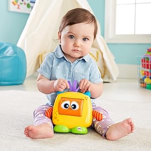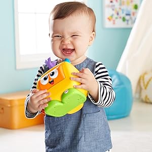 - Baby can bat at the monster’s roller face for 3 different feelings: happy, sad and surprised