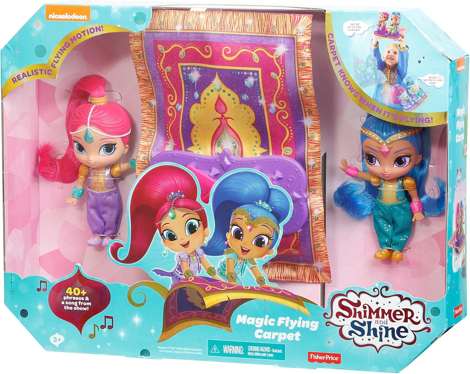 Little genies can soar into adventure on a magic carpet ride with their genies divine, Shimmer and Shine! Not only does this glittery jewel-toned carpet look like the one on the television show, but it also features a realistic flying motion and over 40 phrases and sounds.