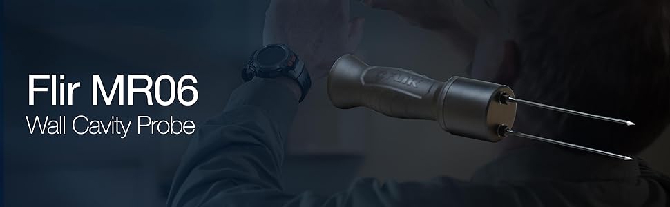 The MR06 Wall Cavity Probe expands the functionality of your FLIR Moisture Meter by allowing you to easily measure insulation moisture levels within wall cavities and the inside face of exterior walls. The MR05 is compatible with the MR77, MR160, and MR176 moisture measurement devices. Complete with two sets of insulated pins (4" and 6") and detachable cord with BNC connection.