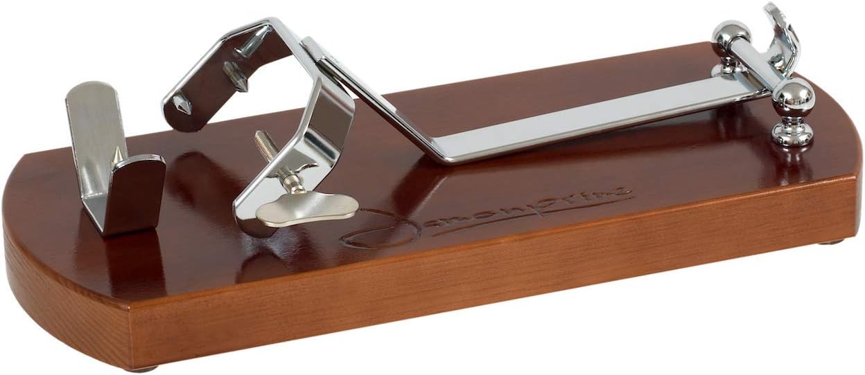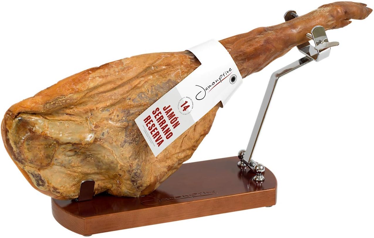 Ham stand to carve hams on the bone (Spanish Serrano, Iberico or Italian Prosciutto). This folding ham holder is manufactured in Spain from Chilean pine and comes with steel skewers with a bright chrome surface finish. Non-slip pads on the base to prevent accidental sliding while carving. Extremely durable, easy to assemble, clean and store after use. It comes with assembly instructions. This is a special design made exclusively by Jamonprive