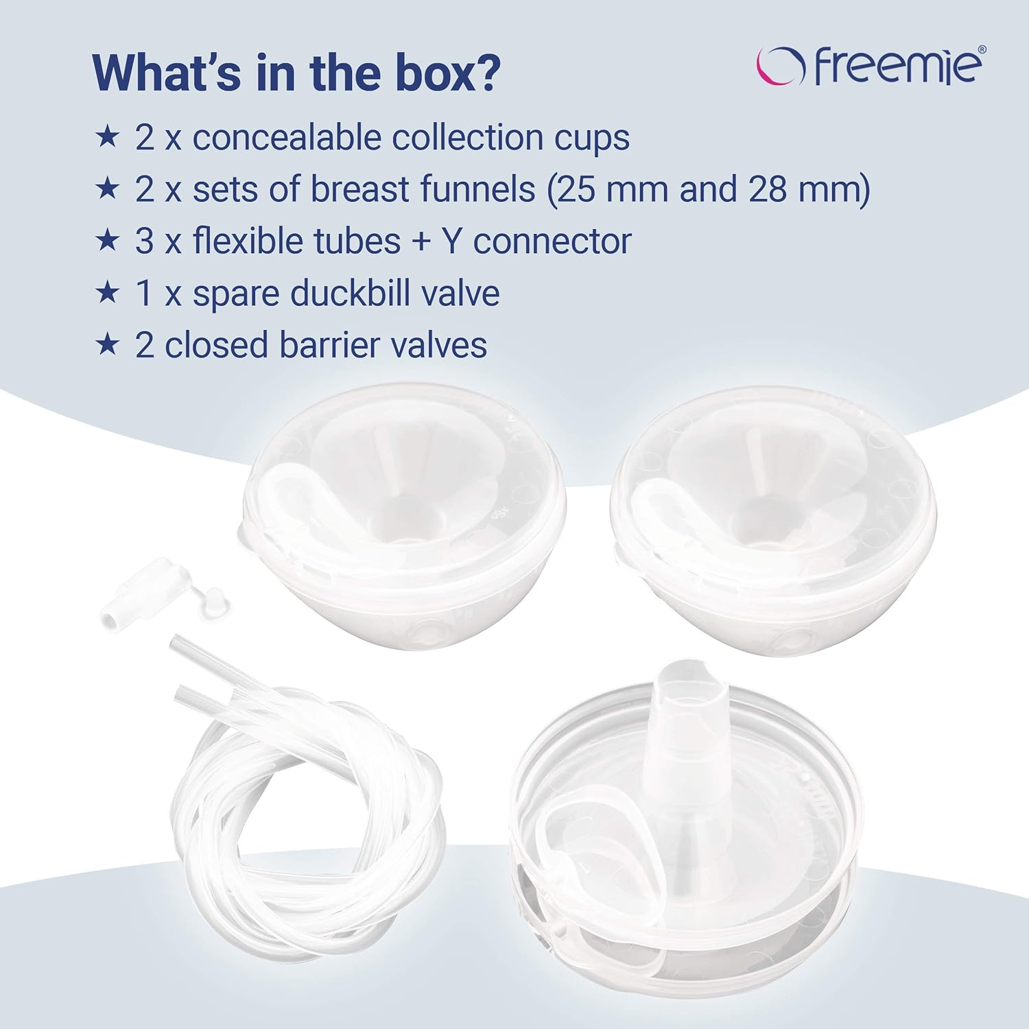 Freemie Hands-Free and Discreet Breast Milk Collection Cup Set | Pump with Your Clothes On Anywhere, Anytime | Sizes 25mm and 28mm Flanges Included | Each Cup Holds Up to 8oz | Pump Not Included