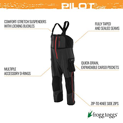 FROGG TOGGS Men’s Pilot II Guide Waterproof Breathable Rain Bib, Black/Charcoal, Small (PF83160)