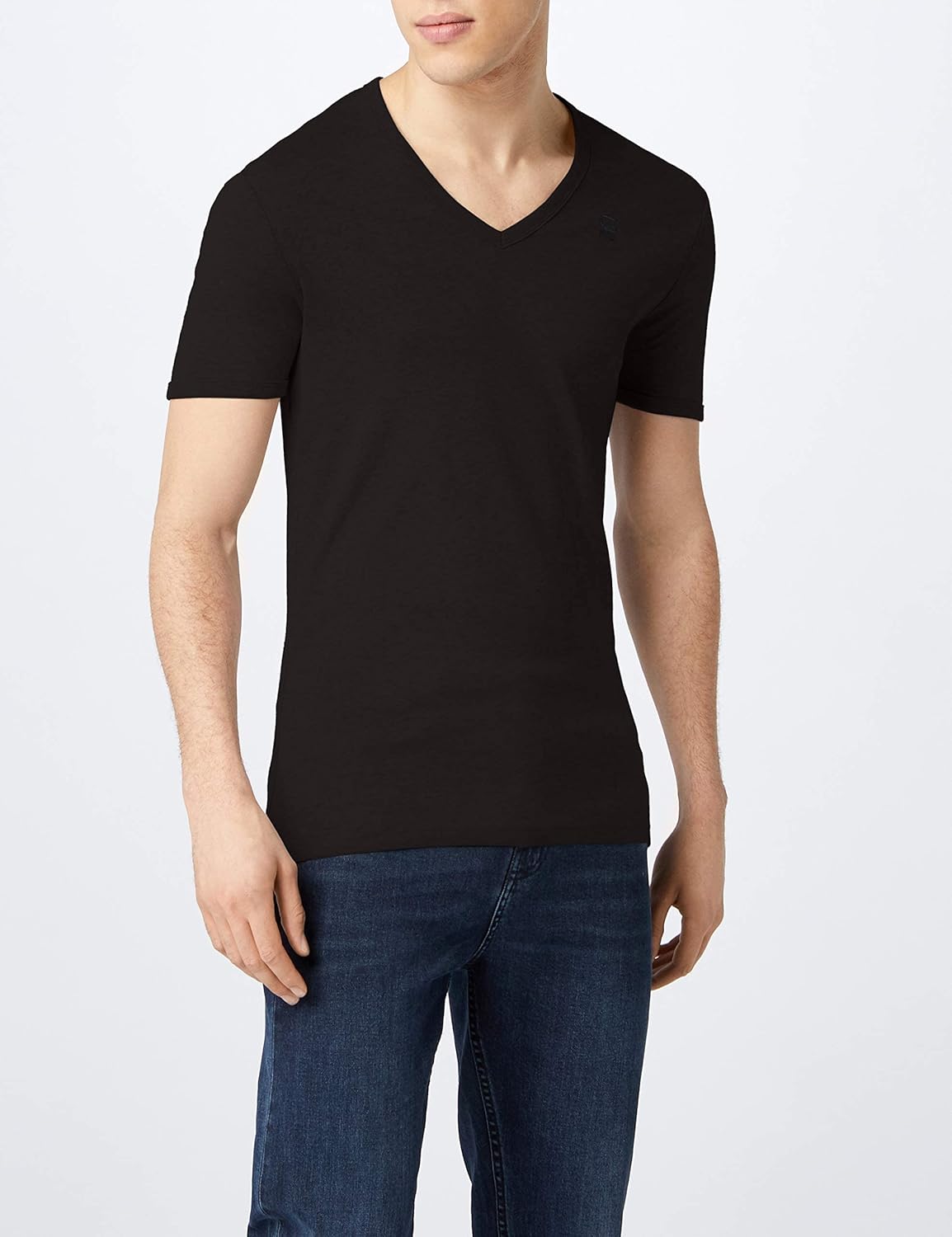 G-Star Men’s 2 Pack V-Neck Logo T-Shirts, Black, XXS