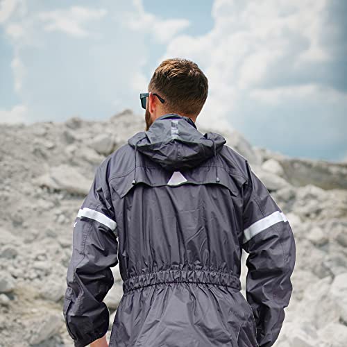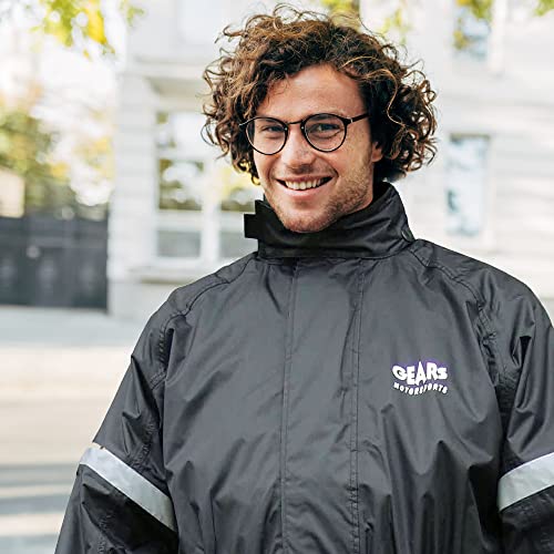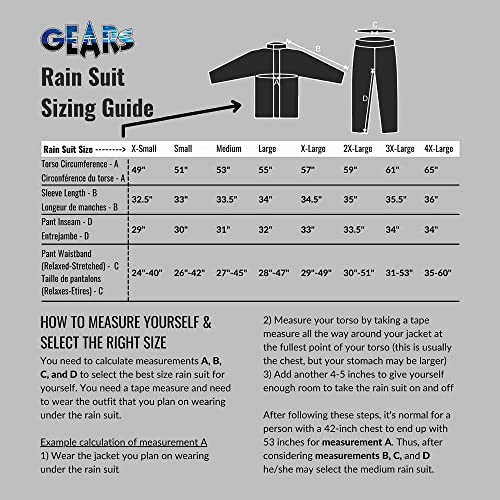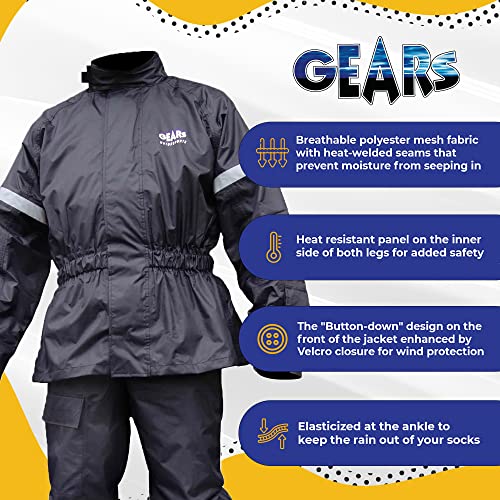 GEARS Dri-Tek Two Piece Rain Suit – 100% Waterproof Rainwear with Under Helmet Hood and Reflective Strips – Breathable Heat-resistant Rain Jacket – Pants (2X-Large)