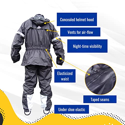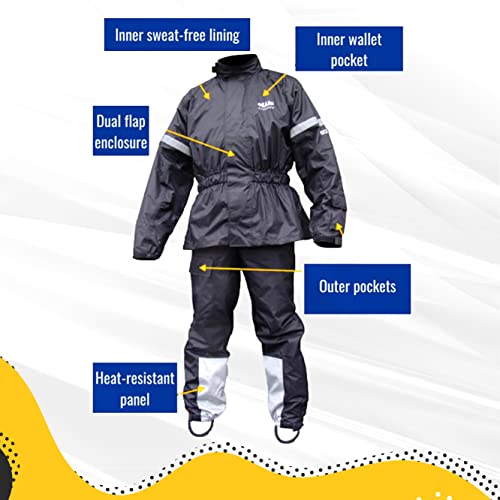 - π USER FRIENDLY: Featuring convenient pockets on the left arm, right leg, and inside the jacket for easy access to your everyday carry. Comes with an under helmet hood that folds inside the collar if not needed. Knee length zippered opening makes it easy to put the pants on quickly, even while wearing boots. Heat resistant panel on inner side of both legs for added safety.