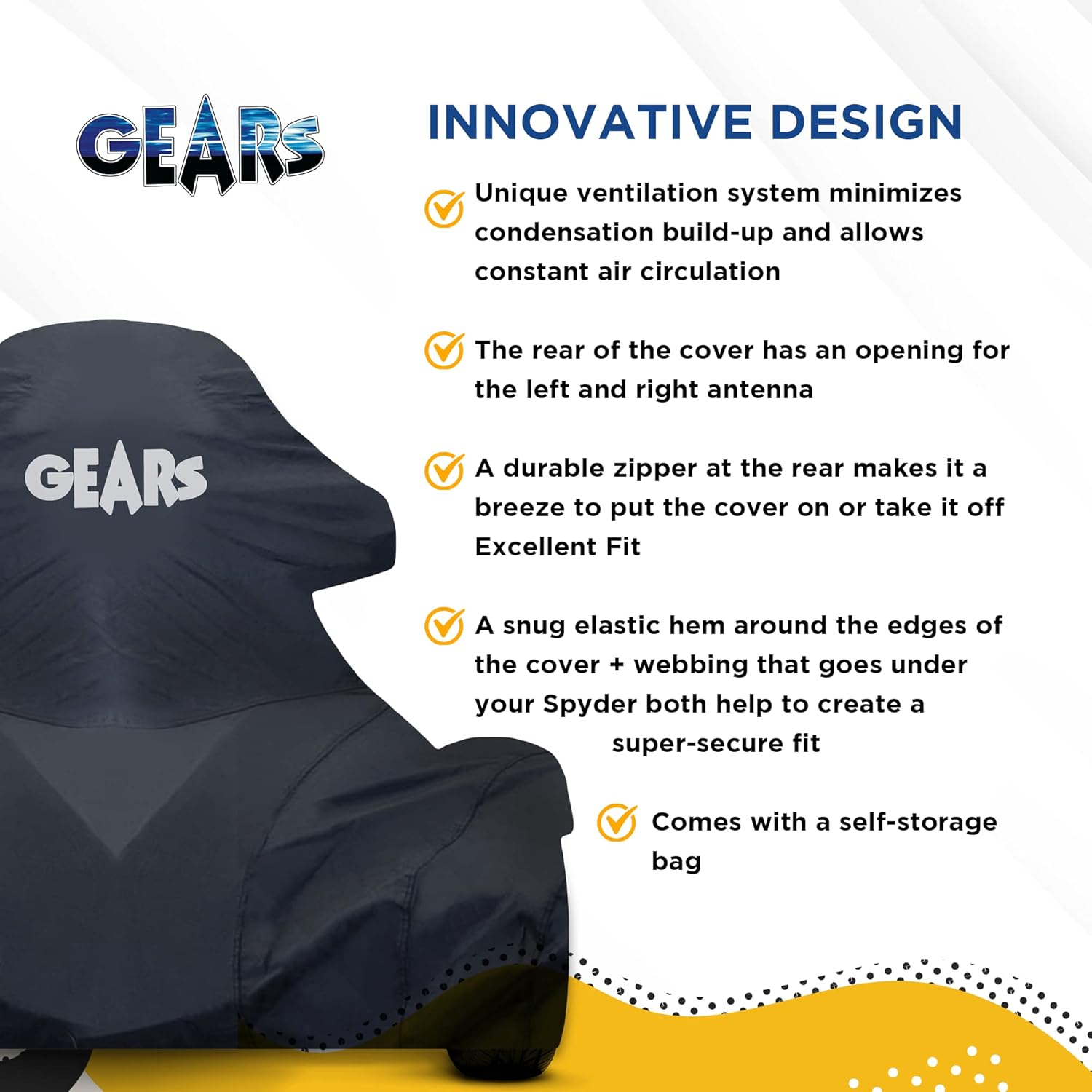 GEARS Waterproof 3-Wheel Motorcycle Cover Compatible with Can-Am Spyder RT & RT Limited-Fits Models 2019 & Prior – With Self-Storage Bag – 3-Wheeler Motorcycle Accessories for Indoor & Outdoor Storage