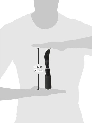 This stainless steel rocker knife has a 3.5cm diameter built up handle, making it perfect for those with a weak grasp or reduced hand movement. The knife features 170 grams of extra weight in the handle to provide additional control for those with a tremor or limited hand control. The knife is easy to grip and the serrated rocker blade makes cutting food quick and simple. Handle length 16.5cm.