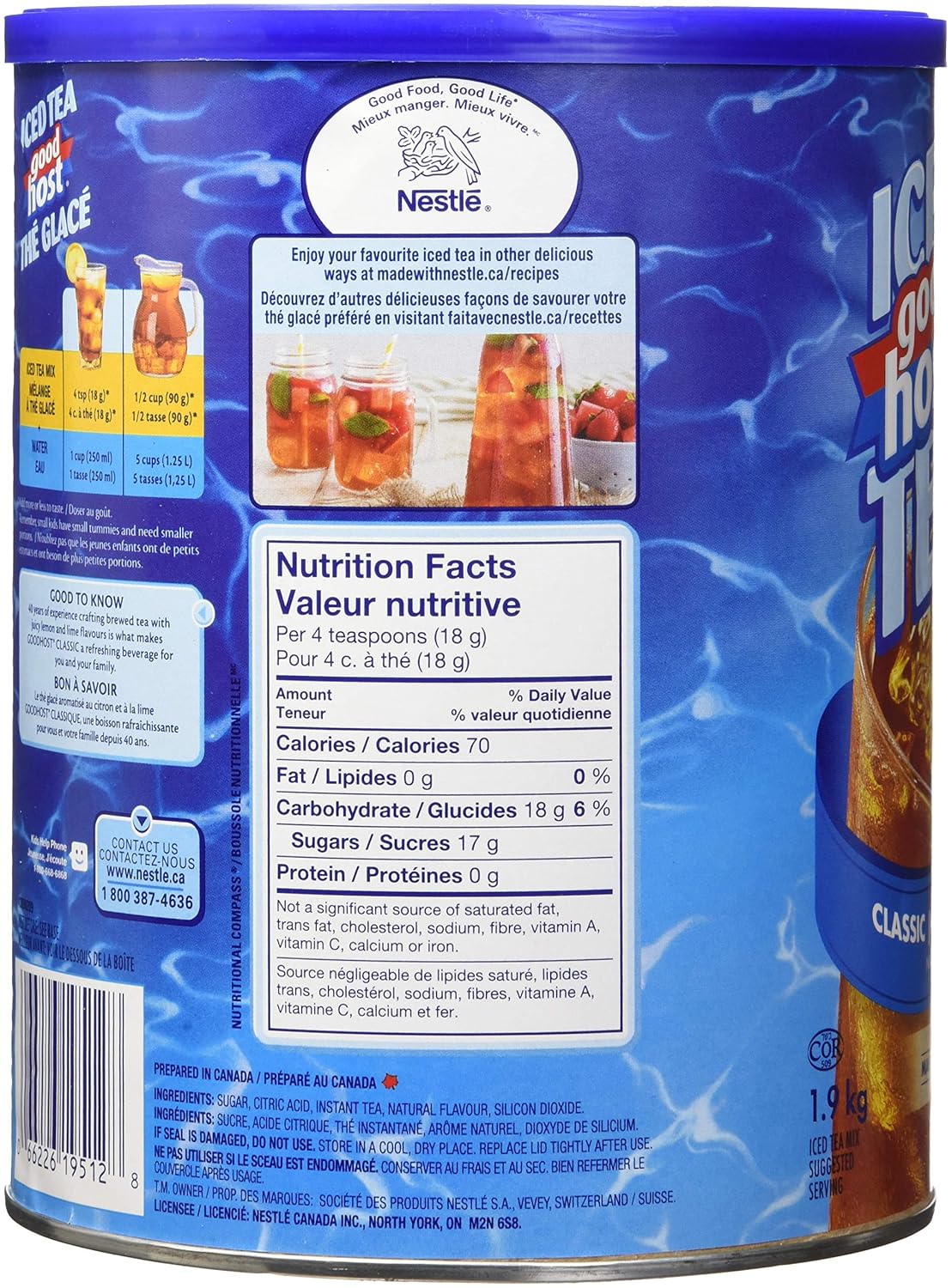 - Proudly prepared in Canada, this 1.9 kg canister makes approximately 26 liters of irresistible iced tea.