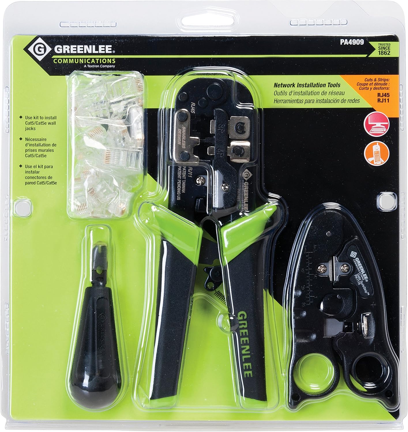 Tool set designed specifically for network installation;Designed for professional use;Includes 3 professional tools, 20 connectors;Installs and repairs Cat5 and Cat5e wall jacks and phone and network cable patch cords.;Designed to make work easier and more efficient