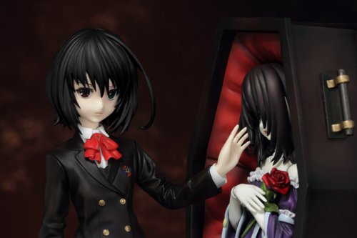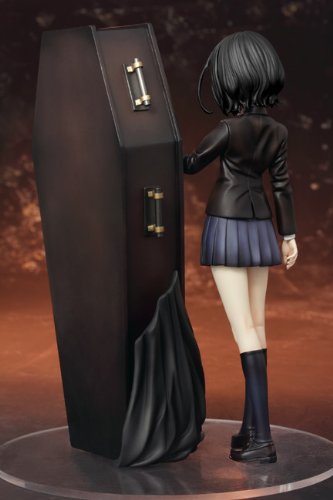 Imported from Japan. Based on the horror novel by Yukito Ayatsuji, the anime and manga Another takes audiences into Yomiyama Middle School and the mysterious deaths that have occurred there. One of the curious characters the protagonist meets is Mei Misaki, and this 1/8-scale figure recreates Mei in stunning detail. Standing 7 1/4″ tall, she is posed with a doll in a coffin. Plus, the figure comes with a replacement face part that comes without Mei’s eye patch.