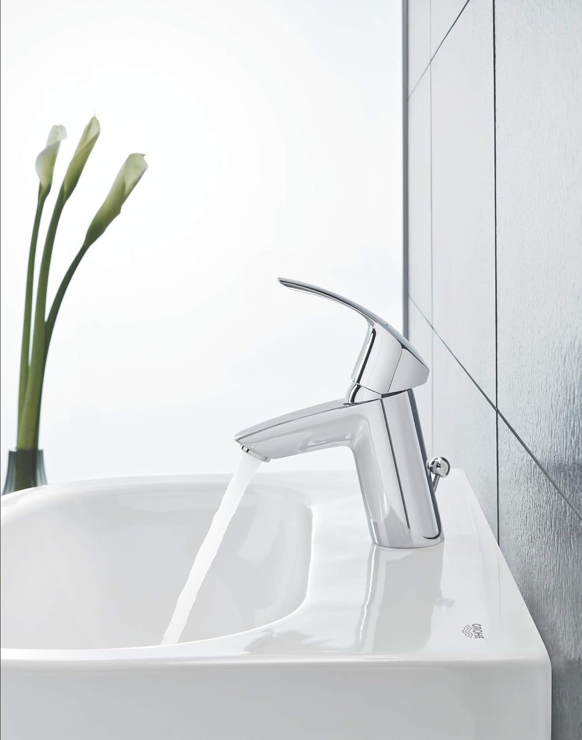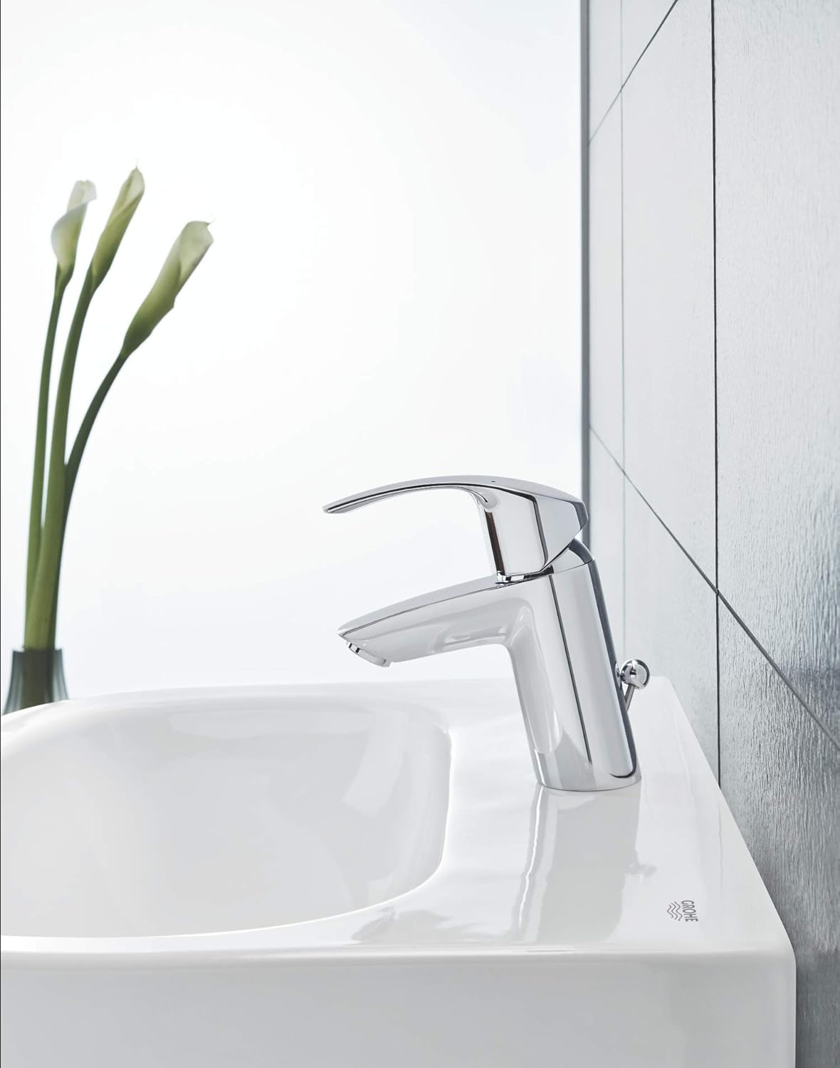 GROHE Eurosmart Single-Lever Basin tap with pop-up Waste, Plug, one Handle Basin Mixer tap, Bathroom, Regular spout, Water-Saving, Easy to Clean, Easy Installation, Chrome, 33265002, Small