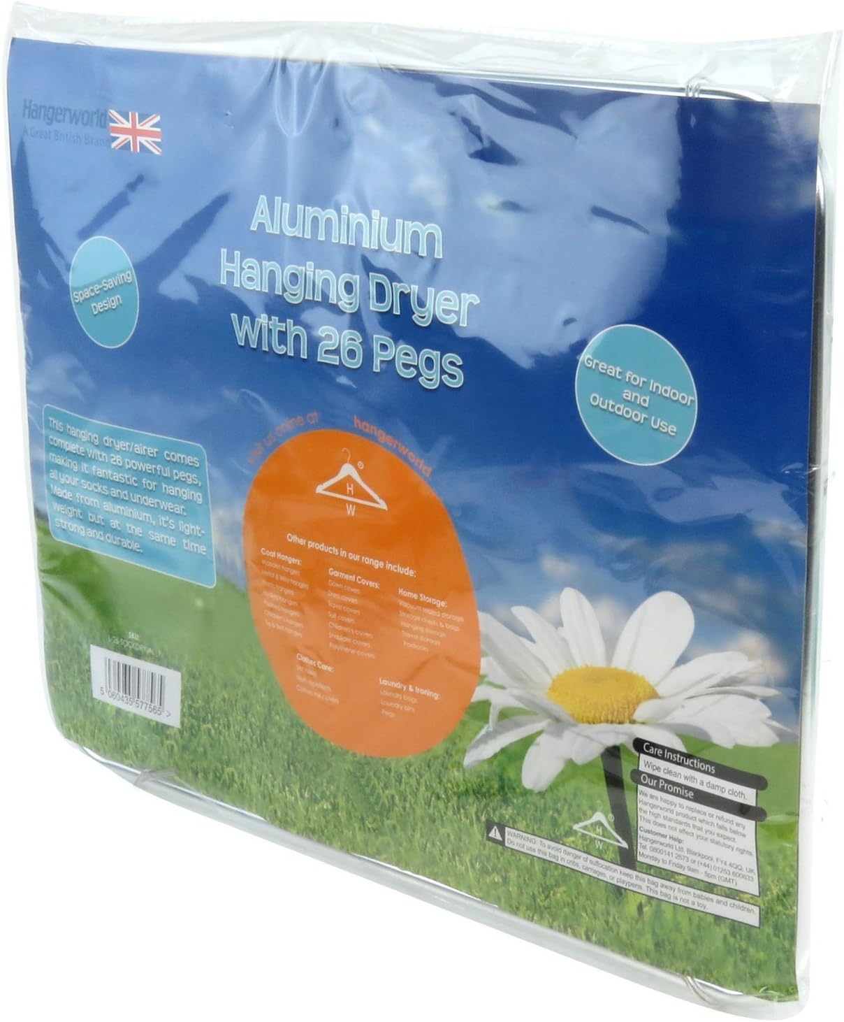 This hanging dryer/airer comes complete with 26 powerful pegs, making it fantastic for hanging all your socks, underwear and smaller laundry items. Made from aluminium, it is stylish and durable and is rust resistant.