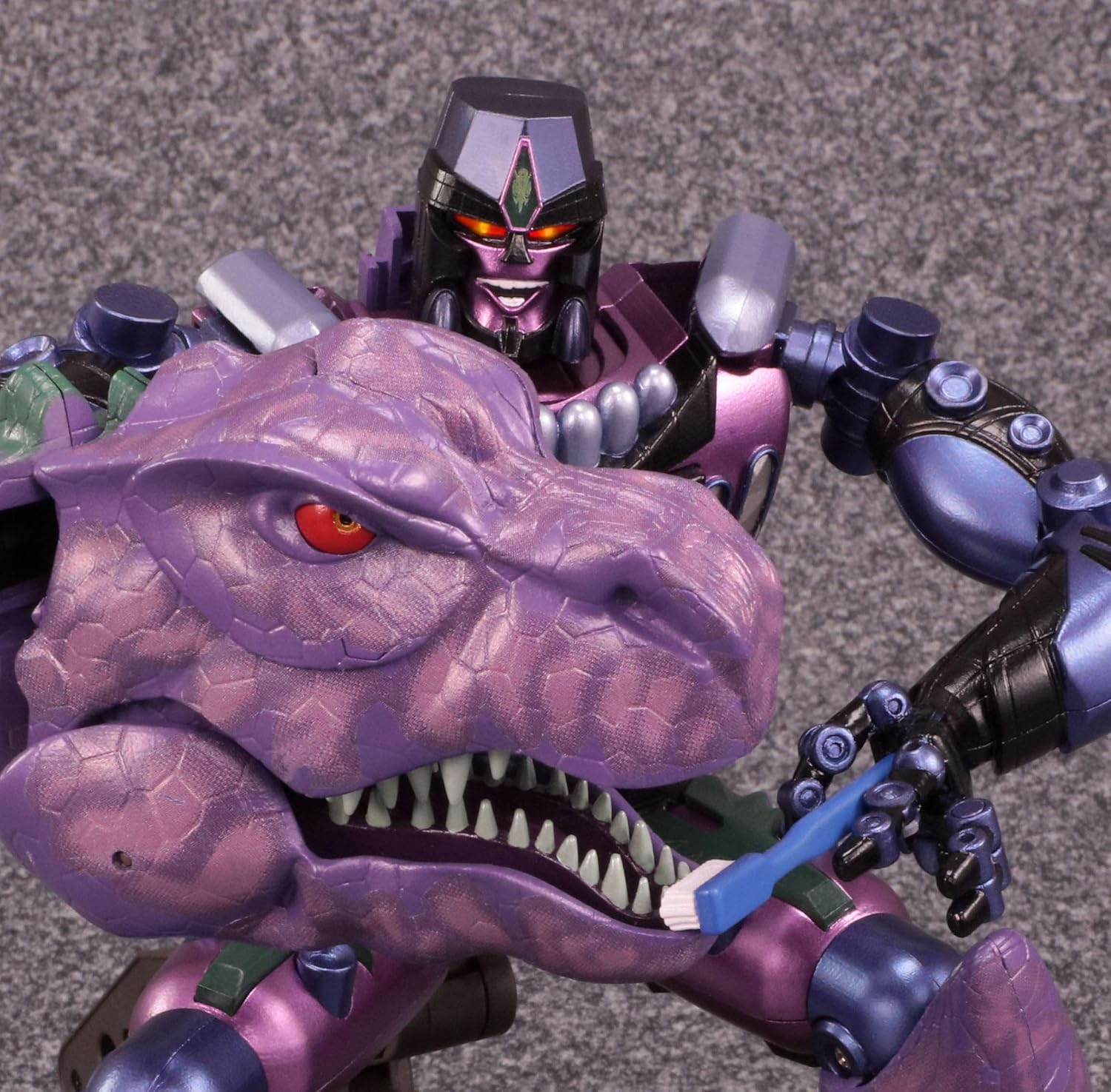 The mighty Megatron from Transformers: beast Wars gets a Transformers masterpiece release from Takara to my! He’s fully transformable between his robot and dinosaur forms, and he can use his dinosaur head as a handheld weapon! Add this epic bad guy to your collection today! Set contains Megatron (beast Wars), hunting rifle, beam effect, toothbrush, replacement face (smile), replacement face (scream), adapter (beast mode), adapter (robot mode), adapter (lifter), character card, and instruction manual.