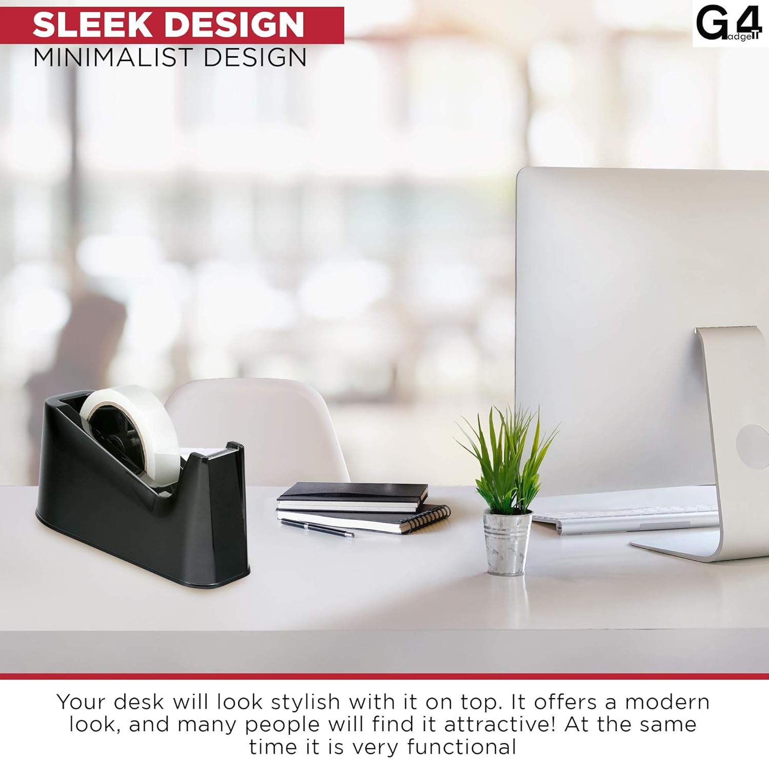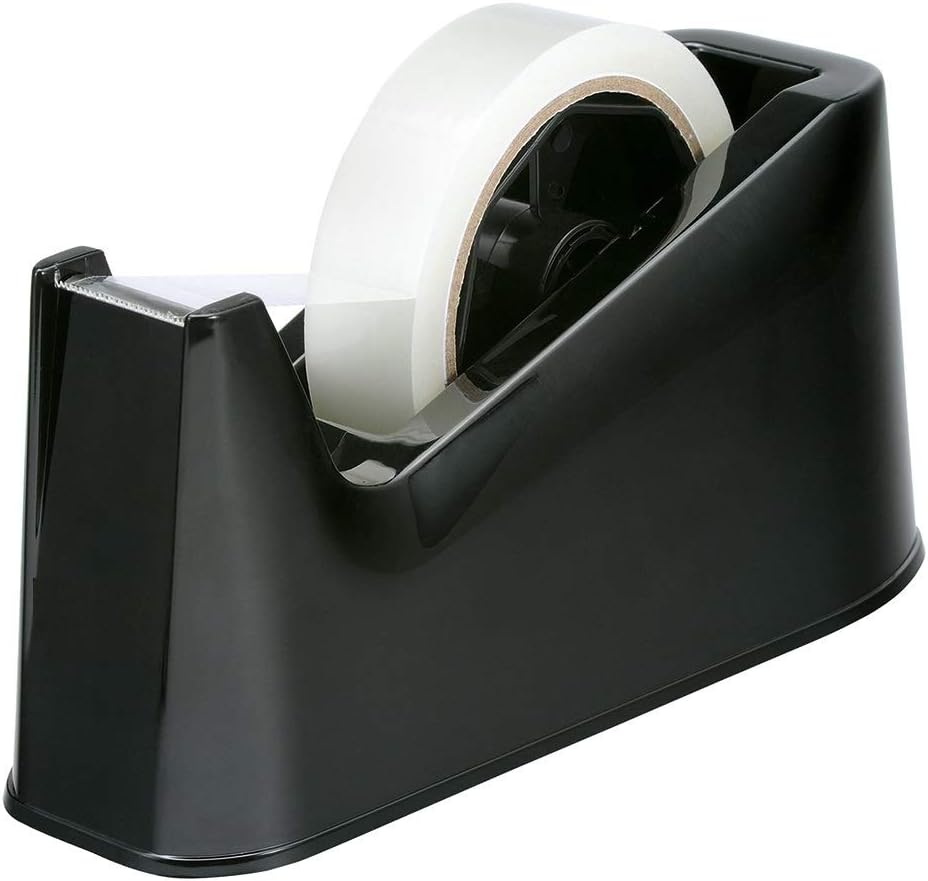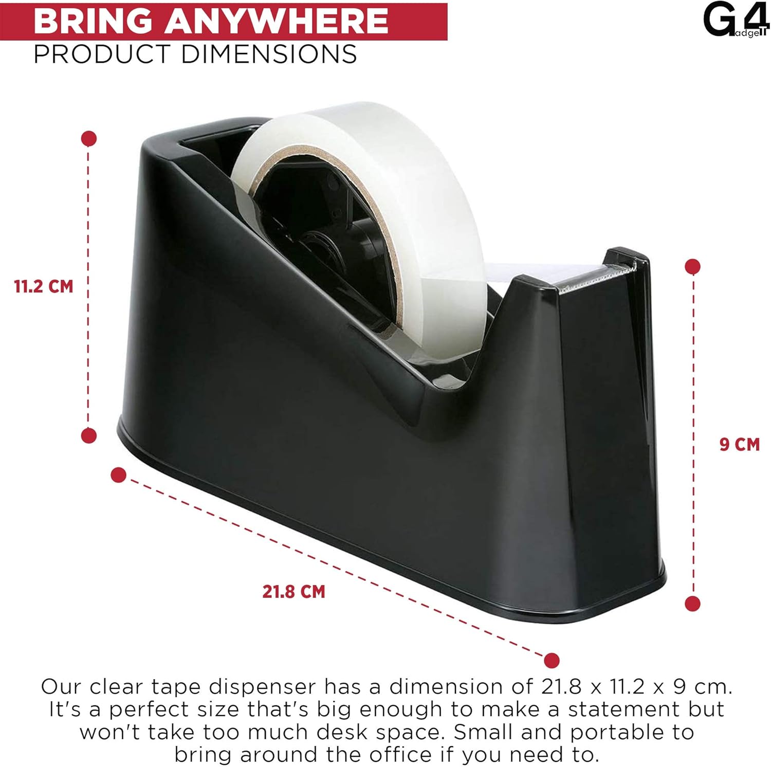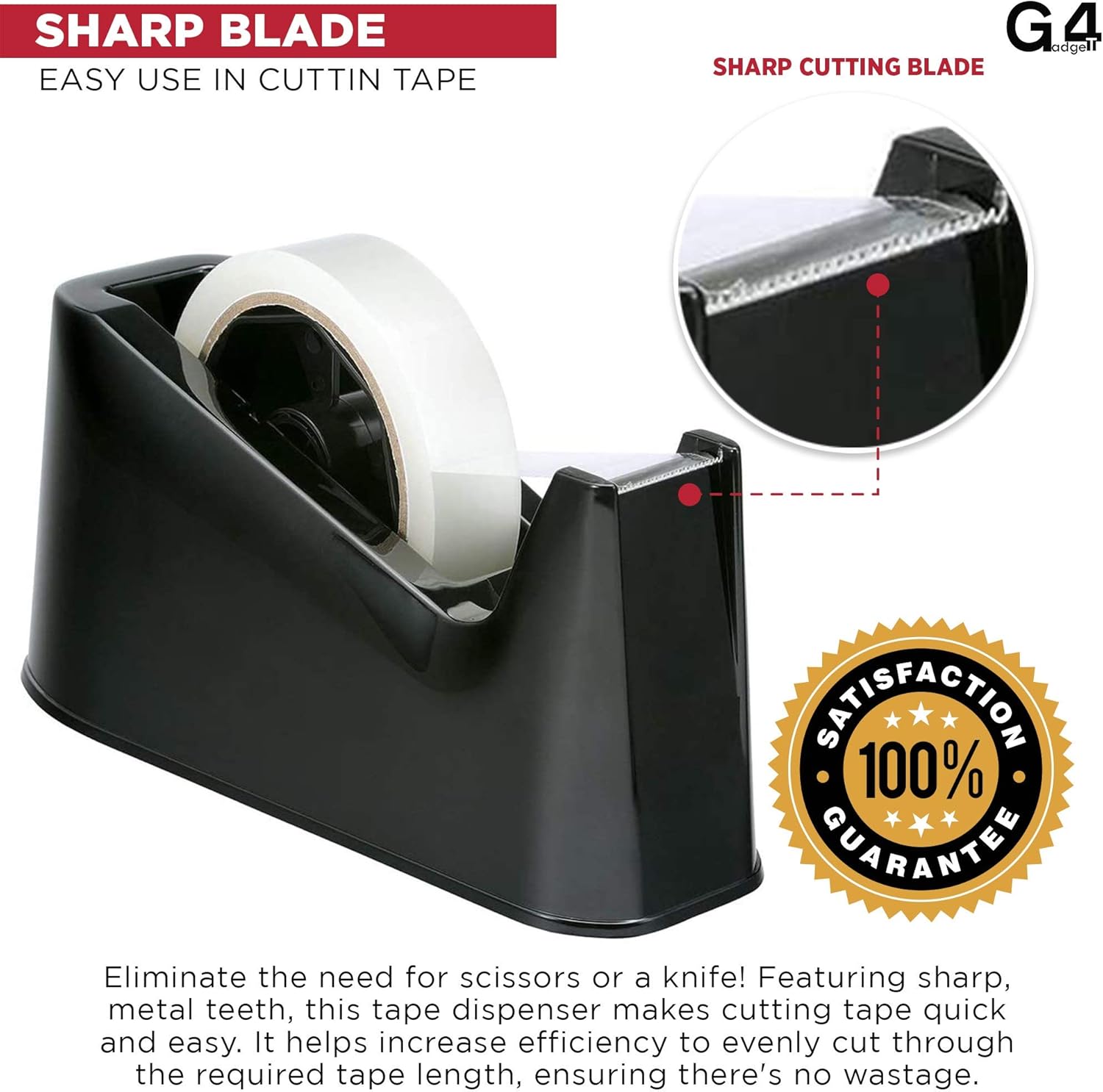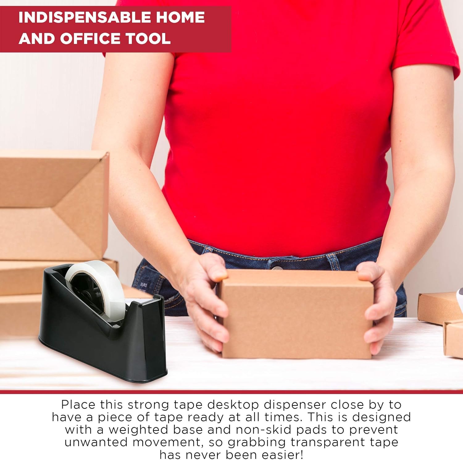 Heavy Duty, Tape Dispenser – Weighted, Non-Skid Rubber Base – High-Quality, Sharp Cutting Blade – Black, Desktop Adhesive Distributor – Uniform Cutting – One Hand Dispensing