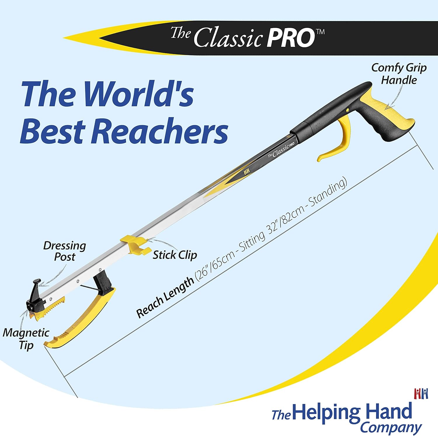 Whether its avoiding bending and straining getting dressed, balancing on a stool to reach up high, or getting those pesky items that fall behind the washer, you’d appreciate the help of a Reacher. The Classic Pro is the original Reacher, with a comfortable grip, magnetic tip and handy dressing post. Available in 2 sizes to assist you with those everyday tasks. Made in Britain for over 65 years!