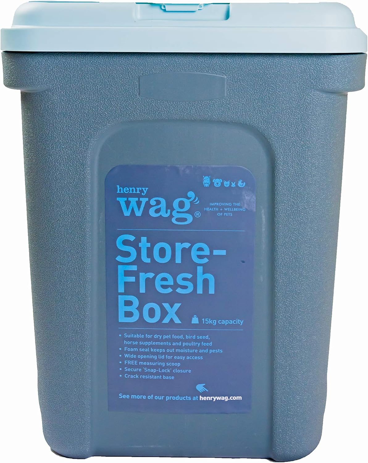 Perfect for storing dry pet food, bird seed, horse supplements and poultry feed. It has a wide opening easy access lid which is fitted with a foam seal to keep food fresh. Includes a free measuring scoop which fits inside the lid, great for easy food delivery and portion size control. The lid has a snap lock closure to prevent easy animal access to the food. All parts are made from tough, crack resistant plastic.